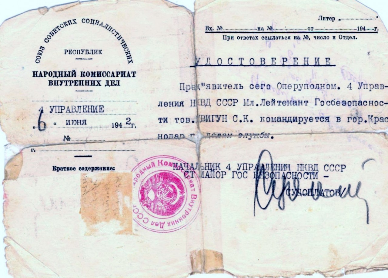18 января 1942 года приказом НКВД № 00145 для организации партизанской войны в тылу врага и ведения диверсионной разведки было создано 4-е Управление НКВД СССР, которое возглавил старший майор госбезопасности Павел Судоплатов. Оперуполномоченным этого управления в марте 1942 года становится младший лейтенант госбезопасности Семён Цвигун. 6 июня 1942 года по заданию Судоплатова он направляется в Краснодар для организации партизанских отрядов. В личном листке Цвигуна по учёту кадров в пункте 26 записано: «По заданию НКГБ СССР сформировал п/отряд «Батька», который действовал на территории Краснодарского края, сам участие за линией фронта не принимал». Батькой величали командира отряда Павла Кривоносова, а отряд больше известен под названием «Кубанцы».