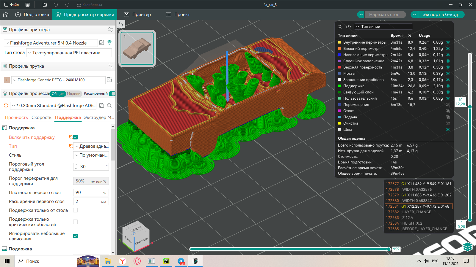Модель внутри имеет мешанину с пустотами и висячими элементами, что видно при нарезке, если даже вы ставите 100% заполнение.