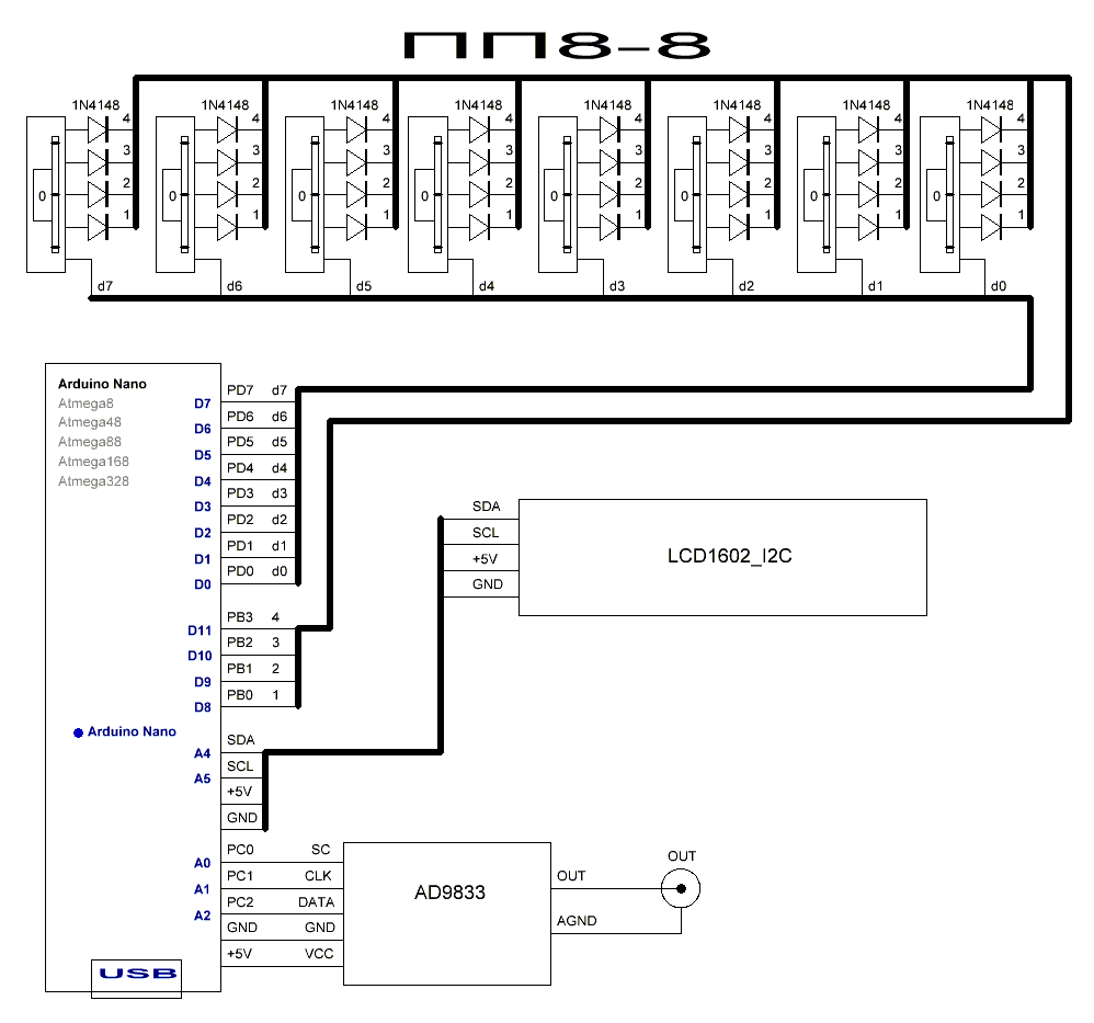 Генератор AD9833 + ПП8-8(8А) (Arduino)