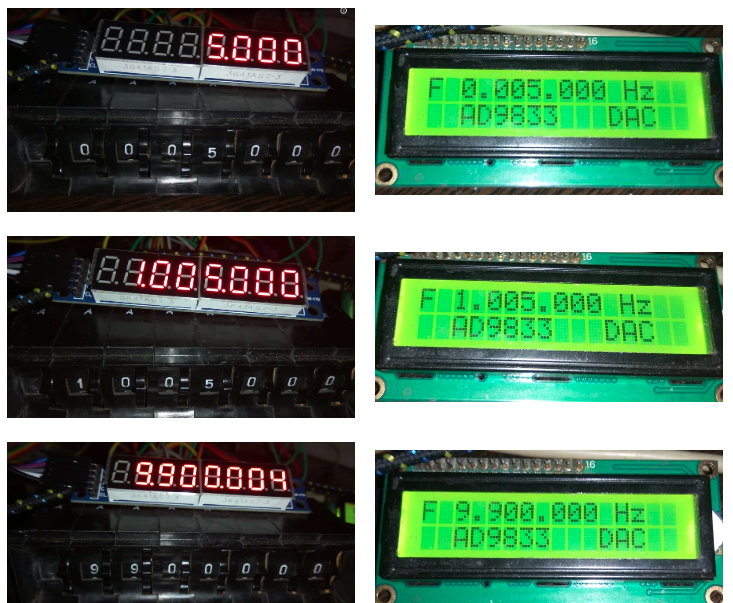 Установленная частота выводится на дисплей LCD1602 c I2C модулем.