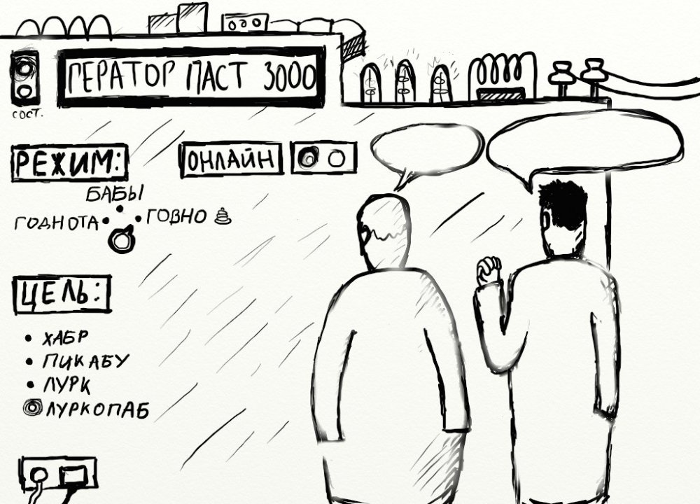 16 AngryMark ГЕНЕРАТОР ПАСТ 3000 11 лет назад ГЕНЕРАТОР ПАСТ 3000. Да, было, но его рисовал я. Рисовал давно для паблика "луркопаб", когда только появился граф. планшет. Под катом есть шаблон. [моё] Луркморье Генератор Паста Шаблон Под катом ещё Автор