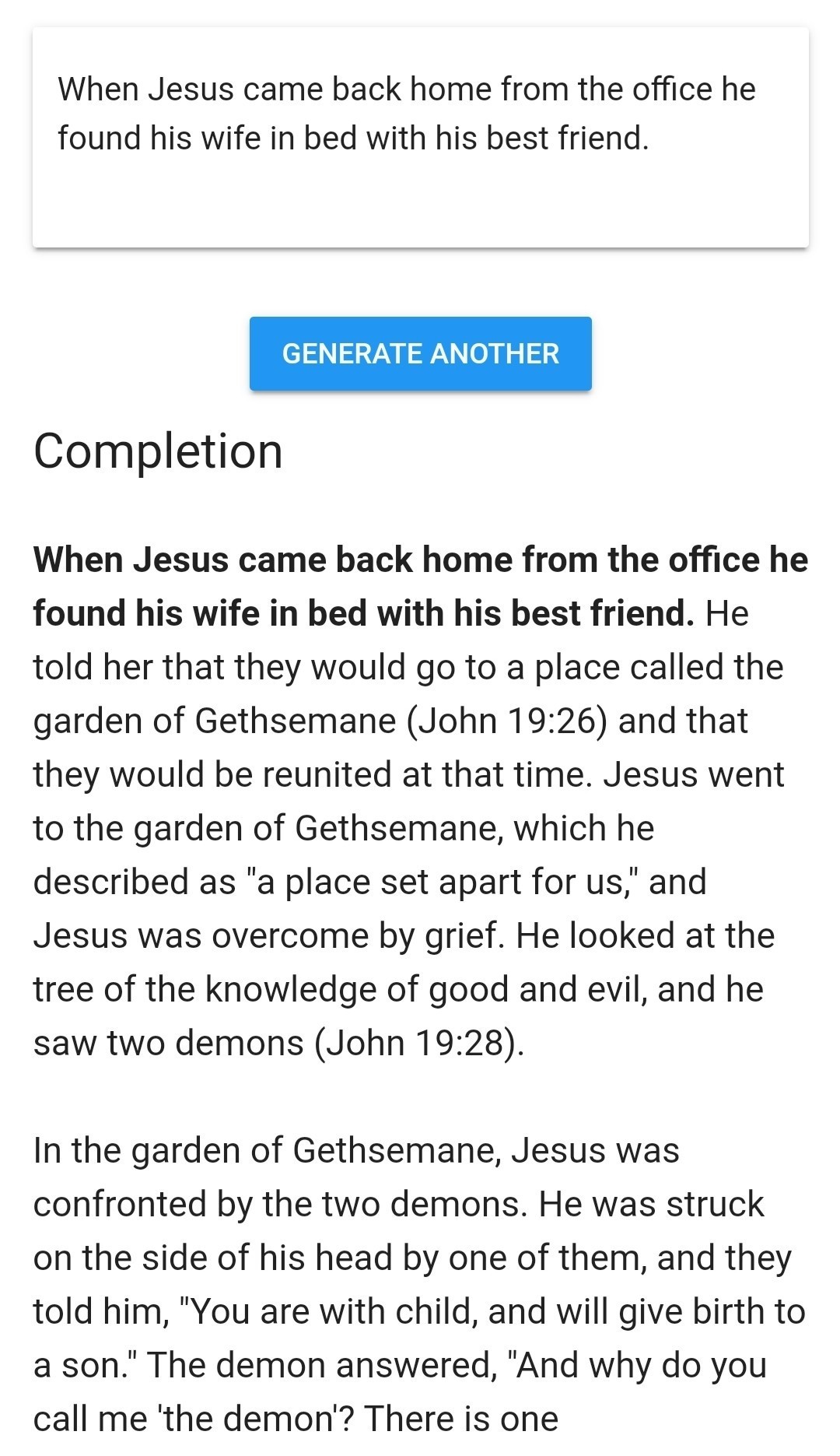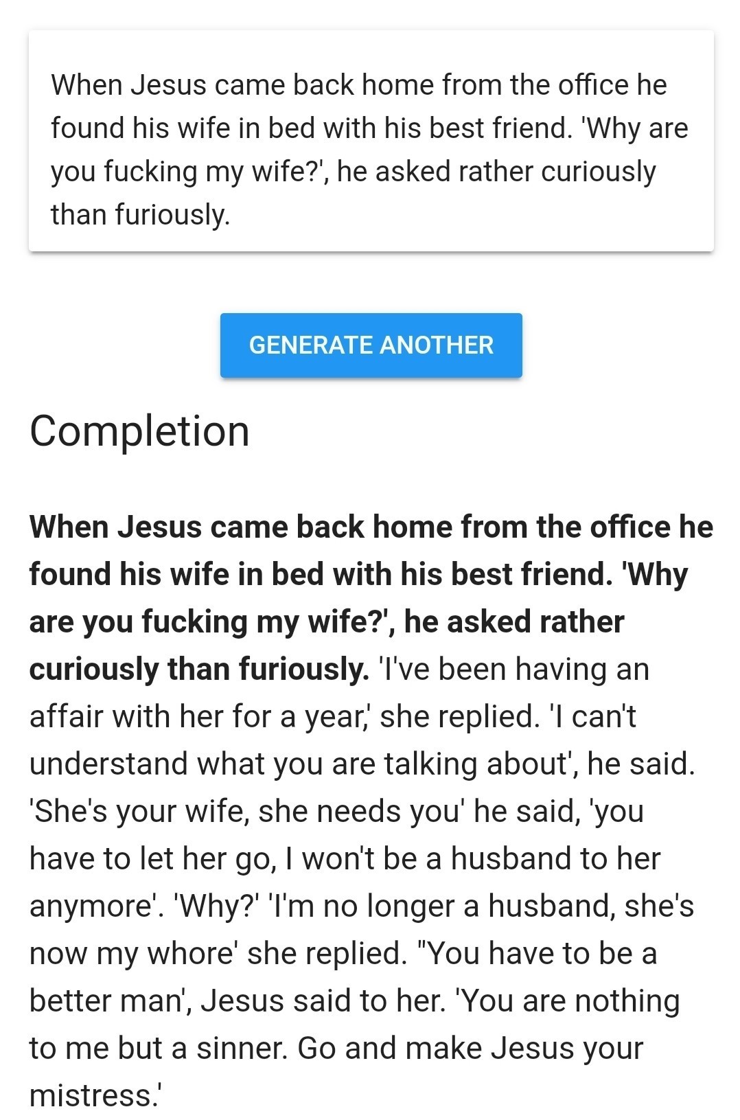 Тексты часто неожиданно обрываются. Насколько я понял, эта штука не предназначена для написания чего-то законченного, т.к. она умеет только предсказывать следующее слово, учитывая предыдущие.