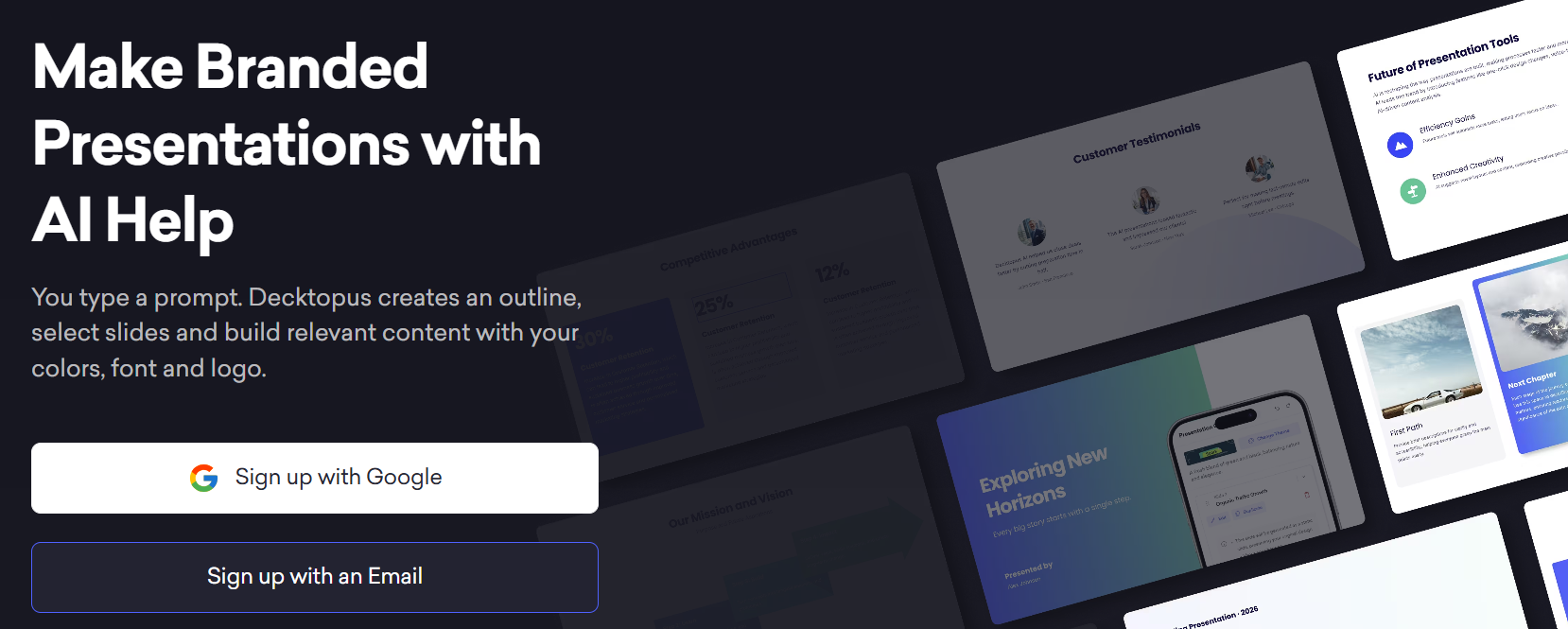 Decktopus делает ставку на максимальную простоту создания презентаций. Отвечаете на несколько вопросов о теме, цели, аудитории — ИИ создаёт готовую презентацию за 2-3 минуты.