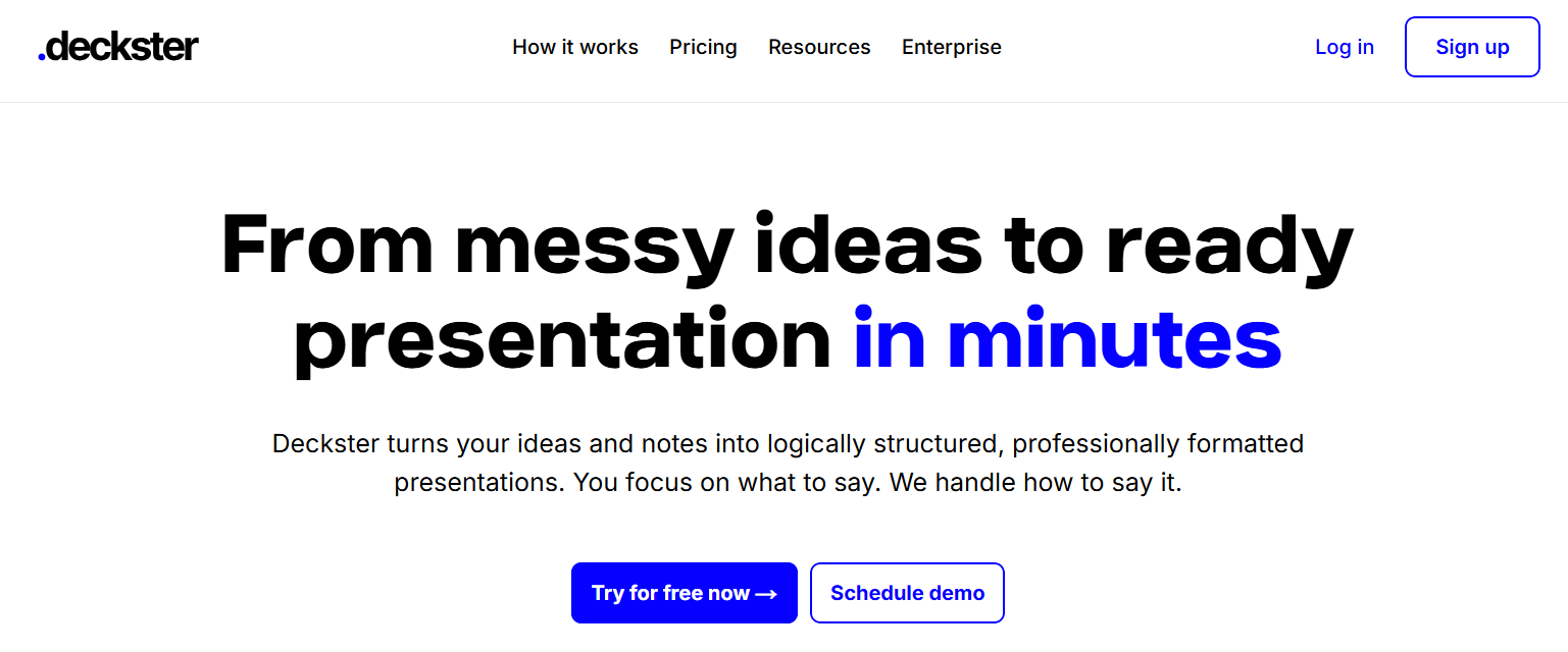 Deckster — молодой российский проект, специально адаптированный под образовательную сферу. ИИ понимает специфику учебных презентаций, умеет работать с научными терминами, создавать схемы и диаграммы.