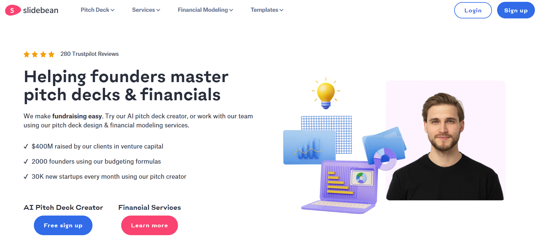 Подходит для стартапов и малого бизнеса. Есть готовые шаблоны для pitch-презентаций, бизнес-планов, маркетинговых предложений.