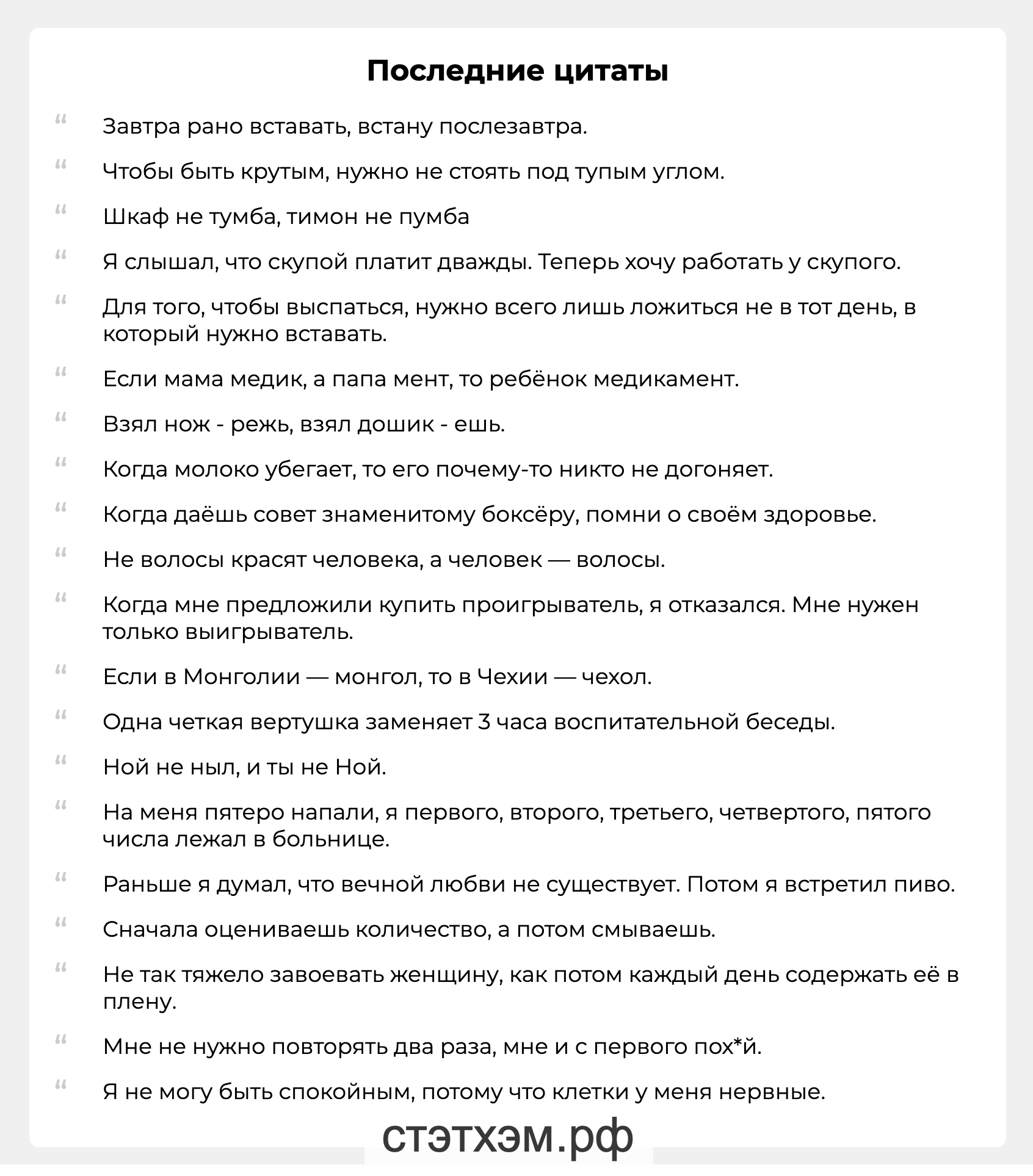 Вот кстати блок с последними Цитатами, тоже с сайта: