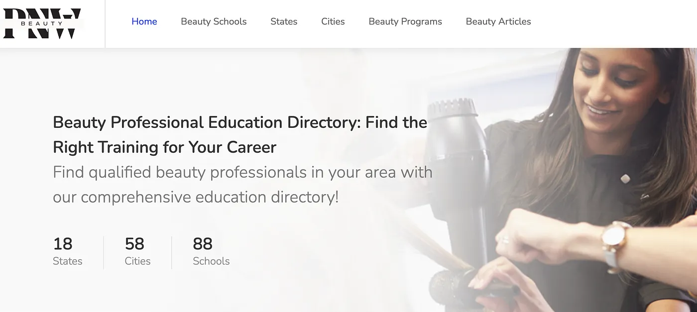 Как настоящий мечтатель, я начал с выбора забавного доменного имени и выбора направления для будущего сайта. Сначала я решил создать каталог для Тихоокеанского Северо-Запада (англ. Pacific Northwest) . Однако возник вопрос: каталог чего? Моя первая идея была создать каталог салонов красоты, но я недооценил их количество и доступность информации об них. В конечном итоге, я решил создать каталог школ, где обучают специалистов в области красоты. Это решение имеет преимущество в том, что школ меньше и информация о них более структурирована, что делает ее более удобной для парсинга.