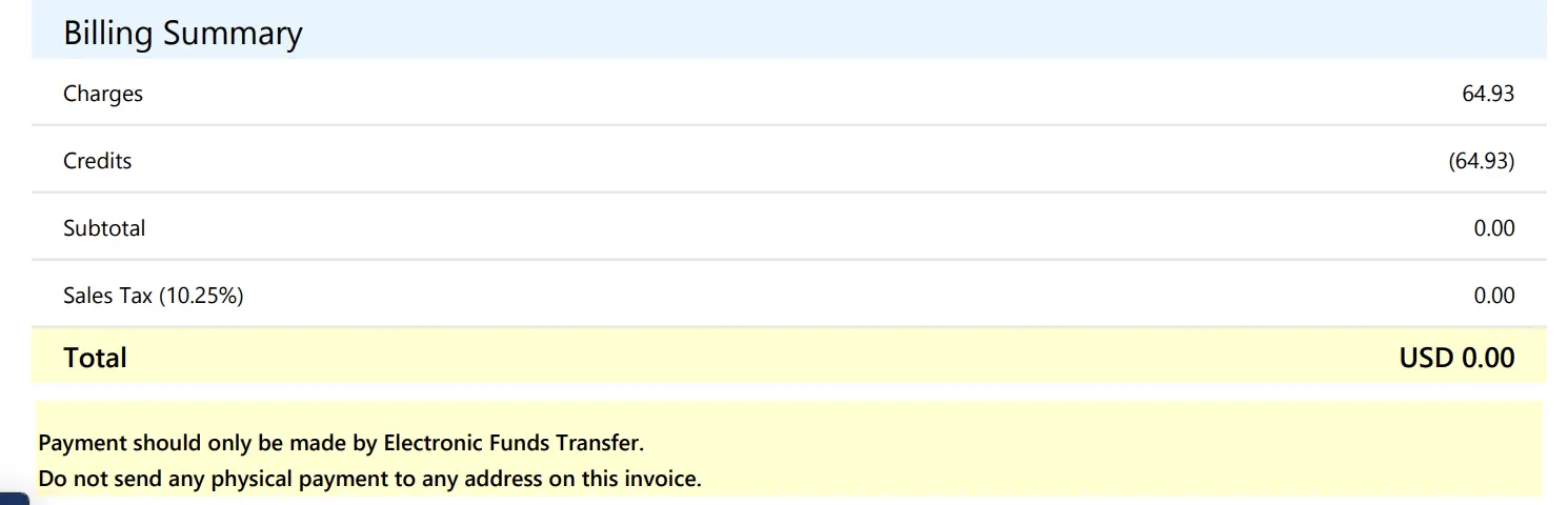 Однако судя по всему при регистрации мне дали какие то бесплатные кредиты и по итогам мой счет составил $0 — спасибо Майкрософт за щедрость.