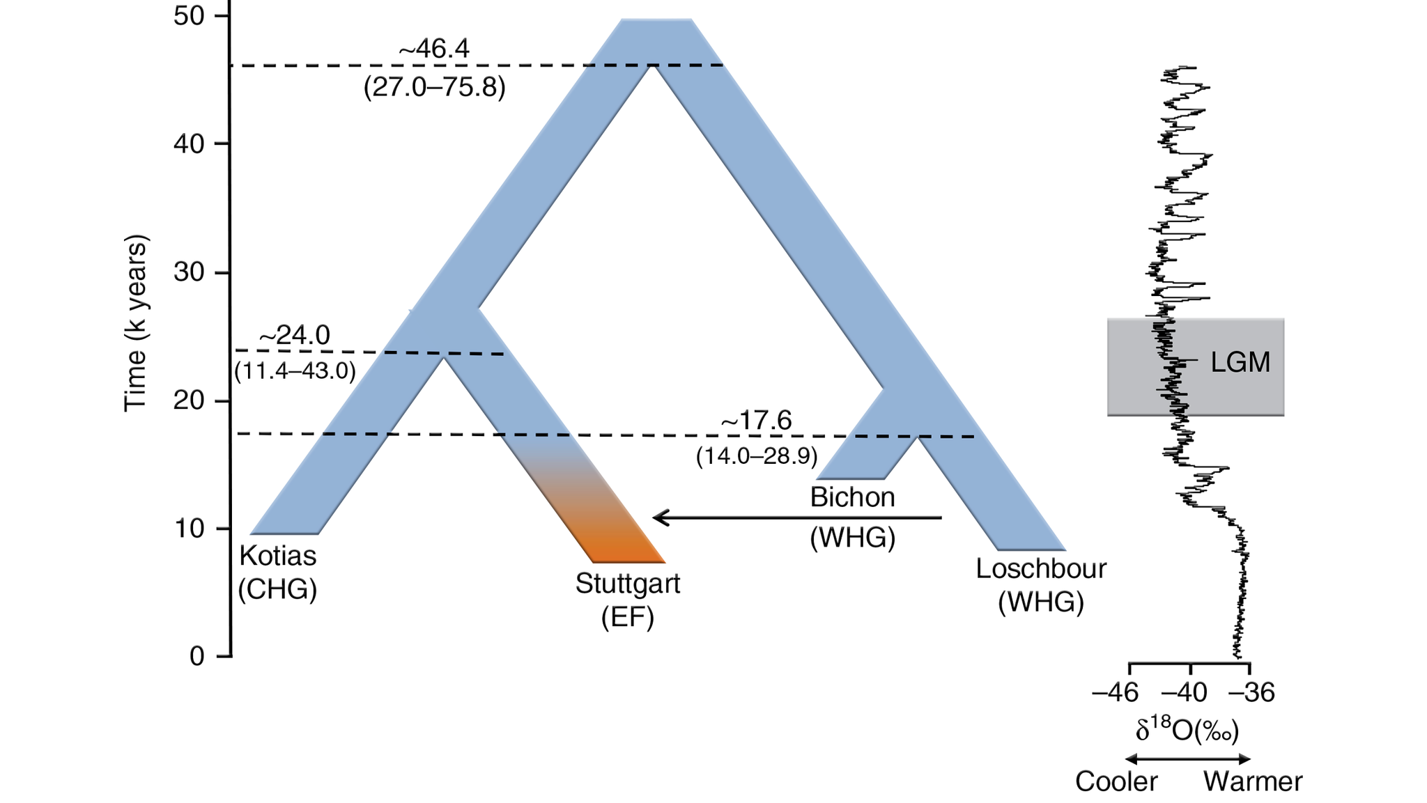 Авторы считают, что расхождение между западноевропейскими охотниками-собирателями и предками ранних иранских земледельцев, было инициировано максимумом последнего оледенения около 26 тыс. лет назад.