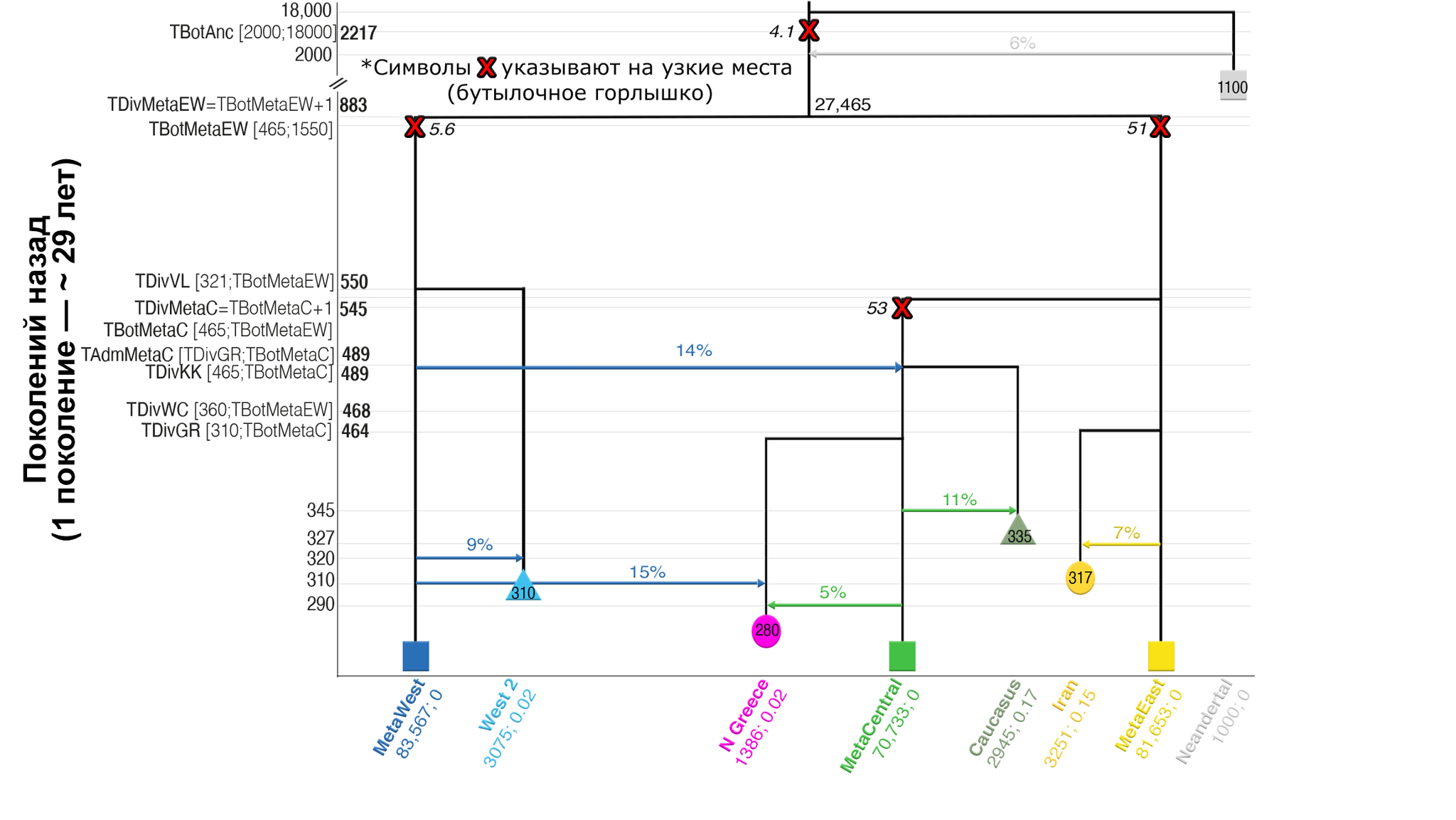 Новая модель также дает важные сведения о глубоком разветвлении донеолитических популяций. Расхождение между западноевропейскими охотниками-собирателями и предками ранних иранских земледельцев оценивается примерно в 25600 лет назад. Это намного моложе, чем предполагалось ранее – не менее 46 тыс. лет назад.