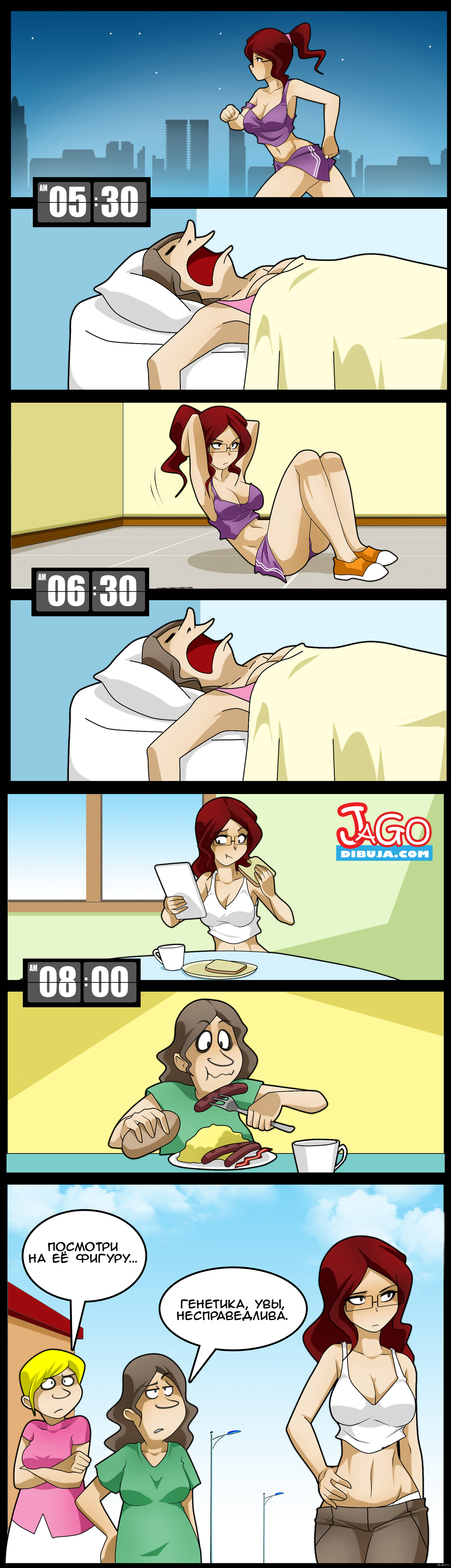 Доля правды в последней картинке есть,от рождения кто-то склонен к полноте или наоборот. Кому-то что бы достичь результата надо куда больше времени, но уповать и жаловаться исключительно на генетику полных маразм и желание оправдать свою лень.