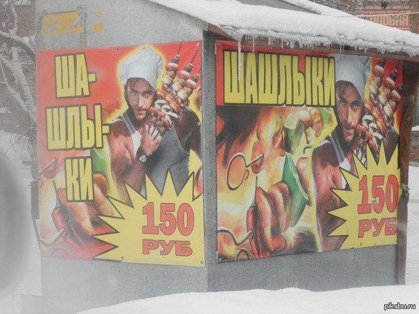 2022 Derk Гениальная реклама 10 лет назад Ездили с другом фотографировать машину, по дороге увидели этот шедевр) [моё] Реклама Росомаха (Люди Икс) Шашлык