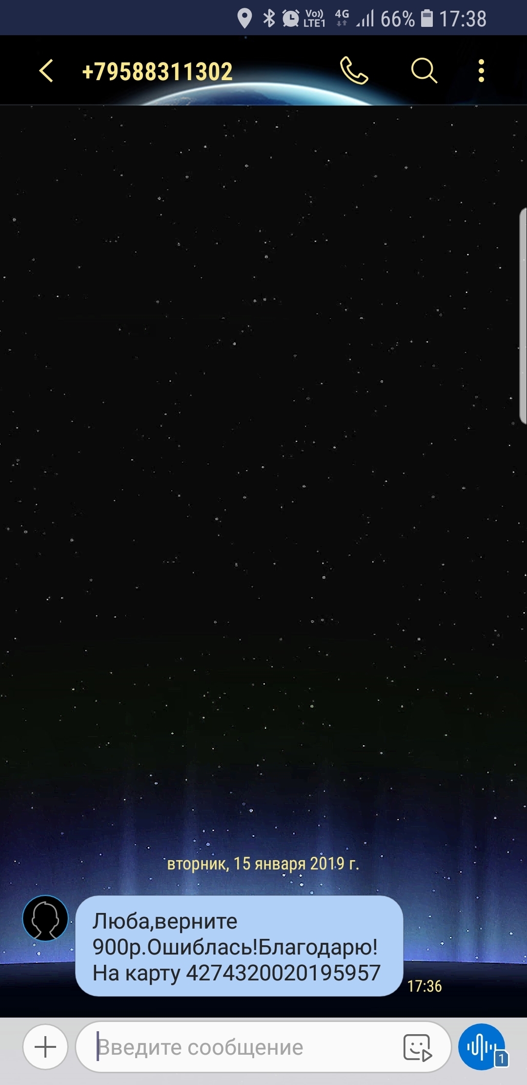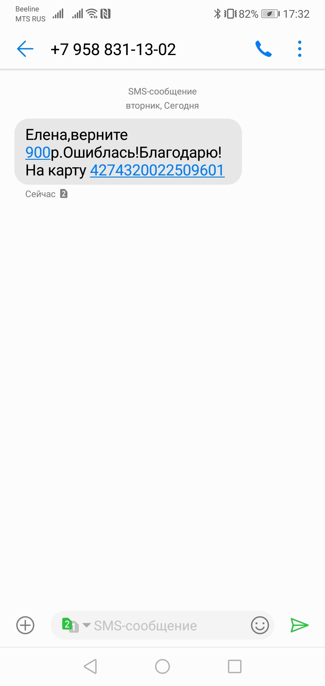 Меня по такой схеме прокатили в билайн. Я ошиблась на 1 цифру при оплате, спешила. Обратилась в СП. Путем хитровыдуманной процедуры запросила возврат на мой номер. Но мне вернули не 500, а 171р, тк на том номере был, видимо, долг.