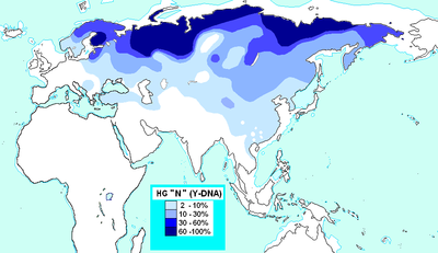 Стоит также отметить, что финны (suomalaiset) с марийцами (республика Марий Эл) занимают "второе место" среди носителей гаплогруппы N в Европе, уступая лишь удмуртам (67%)