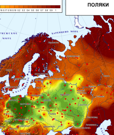 Обычно такую "близость" генофонда жителей Архангельской и Вологодской областей связывают с древним финно-угорским субстратом, однако стоит заметить, что карта более схожа с латышами и литовцами. И возможно это говорит о ином источнике генов.