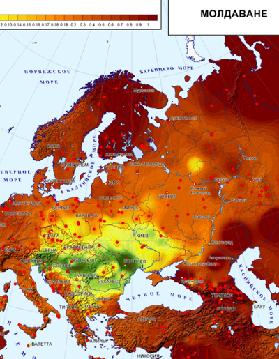 Карты генетических расстояний по Y-хромосоме (мужской линии) из книги Генофонд Европы О. Балановского хорошо отражают историю и близость народов. Для полноты картины в качестве "мерила" выступают 8 гаплогрупп (мужских линий), доминирующих по всей Европе.
