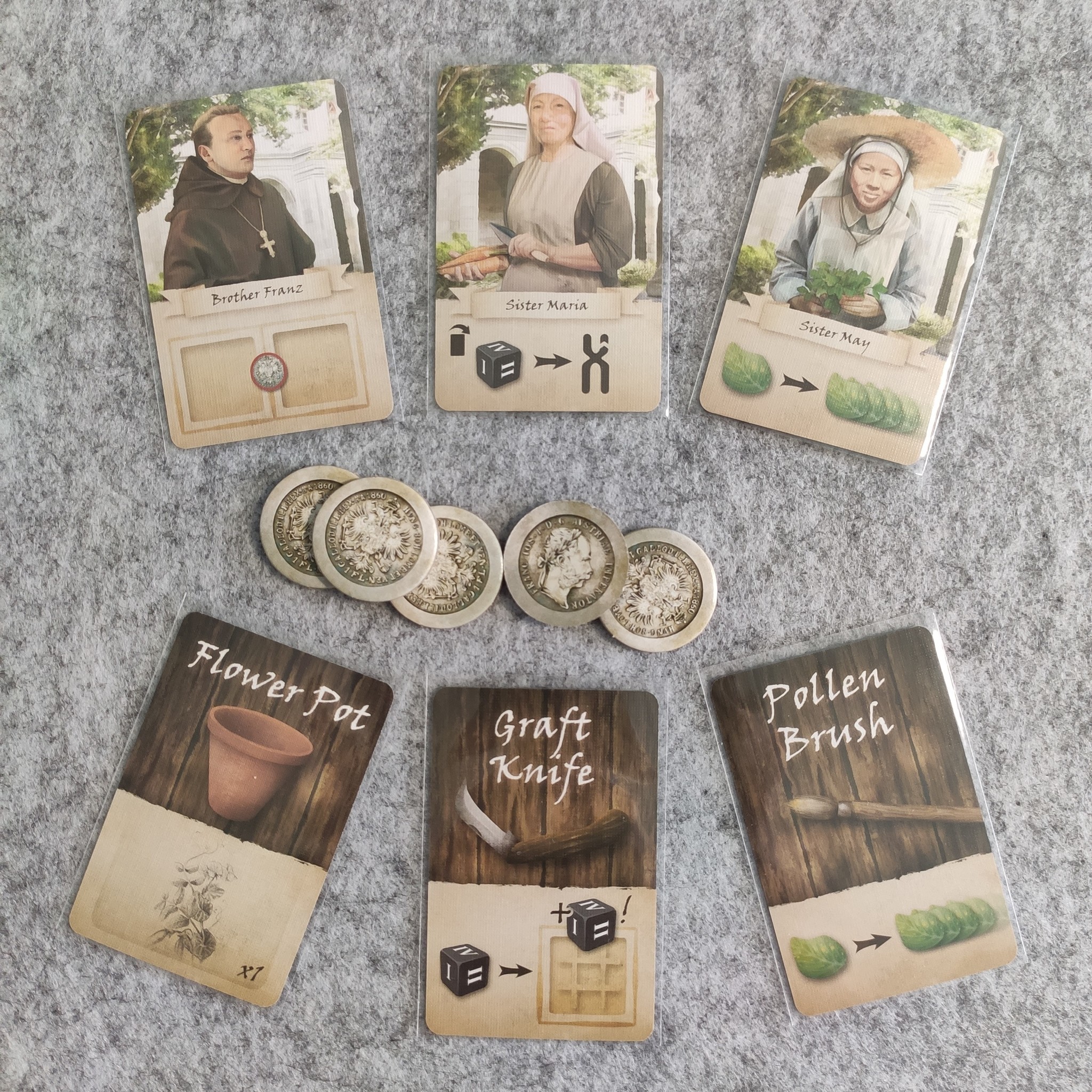 Во время фазы повышения качества исследований можно приобрести различные улучшения - дополнительные места для растений, слоты для кубиков, жетоны действий. Кроме того есть шанс нанять себе помощников, которые будет предоставлять различные бонусы.