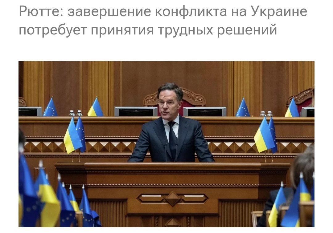 Для урегулирования конфликта на Украине потребуются "трудные решения", заявил генсек НАТО Марк Рютте, выступая в украинском парламенте во время визита в Киев.