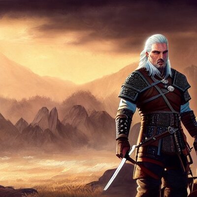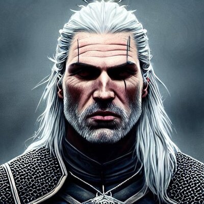 Geralt of Rivia, dramatic pose, 4k photo, portrait, fantasy, (intricate), elegant, cinematic colors, (highly detailed), (digital painting), dramatic background, (realistic art), ((high resolution)), masterpiece, smooth, sharp focus, artgerm, greg rutkowski
