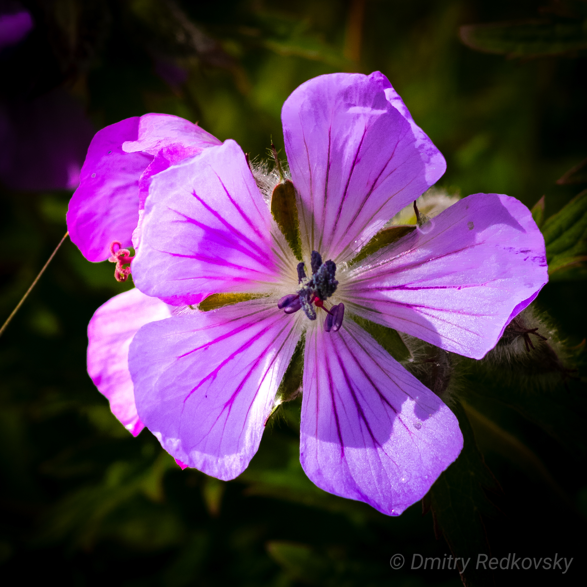 Герань гималайская - многолетнее растение, которое в диком виде растет на субальпийских лугах Гималаев. И на Камчатке :) Она известна своими крупными, сине-фиолетовыми цветками с красноватыми жилками, которые появляются в конце мая - начале июня и радуют глаз все лето. Листья у нее округлые, пятилопастные, покрыты мелкими волосками. Это растение неприхотливо, хорошо растет на солнце или в полутени, предпочитает хорошо дренированную почву.