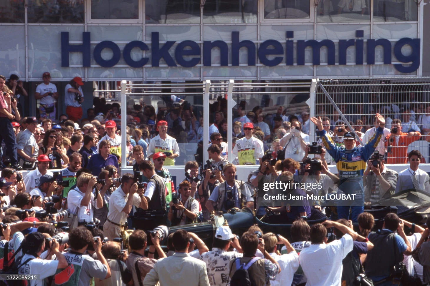 После пересечения финишной черты Шумахер замедлил свой «Бенеттон», чтобы помахать ликующей толпе в первом повороте, и заглох. Это привело к запоминающемуся инциденту, когда буксировочный грузовик подъехал, зацепил его болид и направился в лесную часть Хоккенхайма, куда зрителям вход был запрещен. Толпа ждала несколько минут, пока странная процессия не появилась обратно в зоне стадиона, что вызвало бешенство на трибунах. Этот момент, хотя и был незапланированным происшествием, превратился в культовый и полюбившийся публике эпизод.