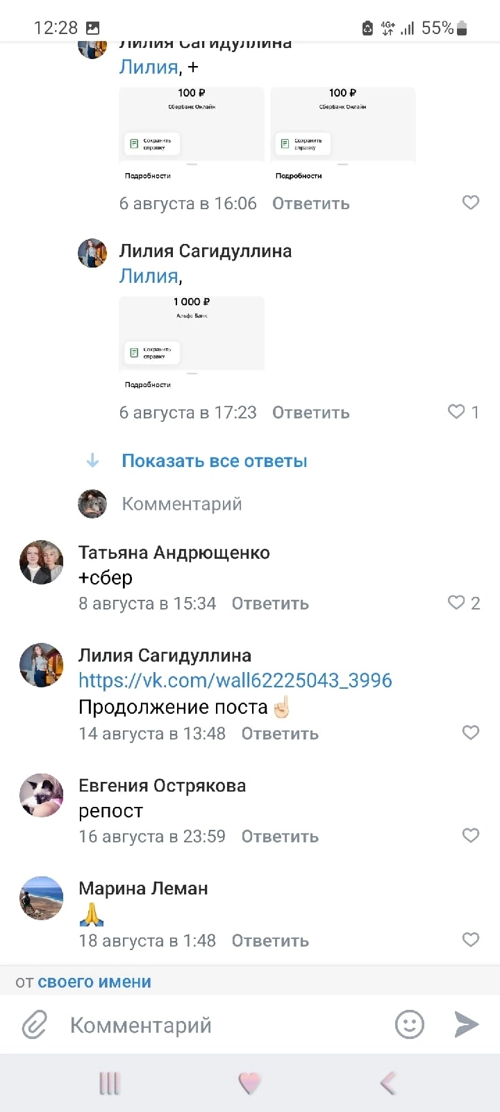 ТЕПЕРЬ Лилия стирает все следы своих сборов, но скрины уже сделаны.