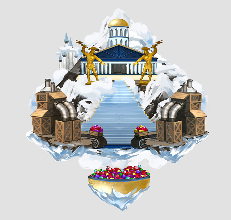 Интересно то, что рисуя трефу, в итоге получилась пика. Сама идея была показать основную ценность фракции башня - это драгоценные камни и титаны.