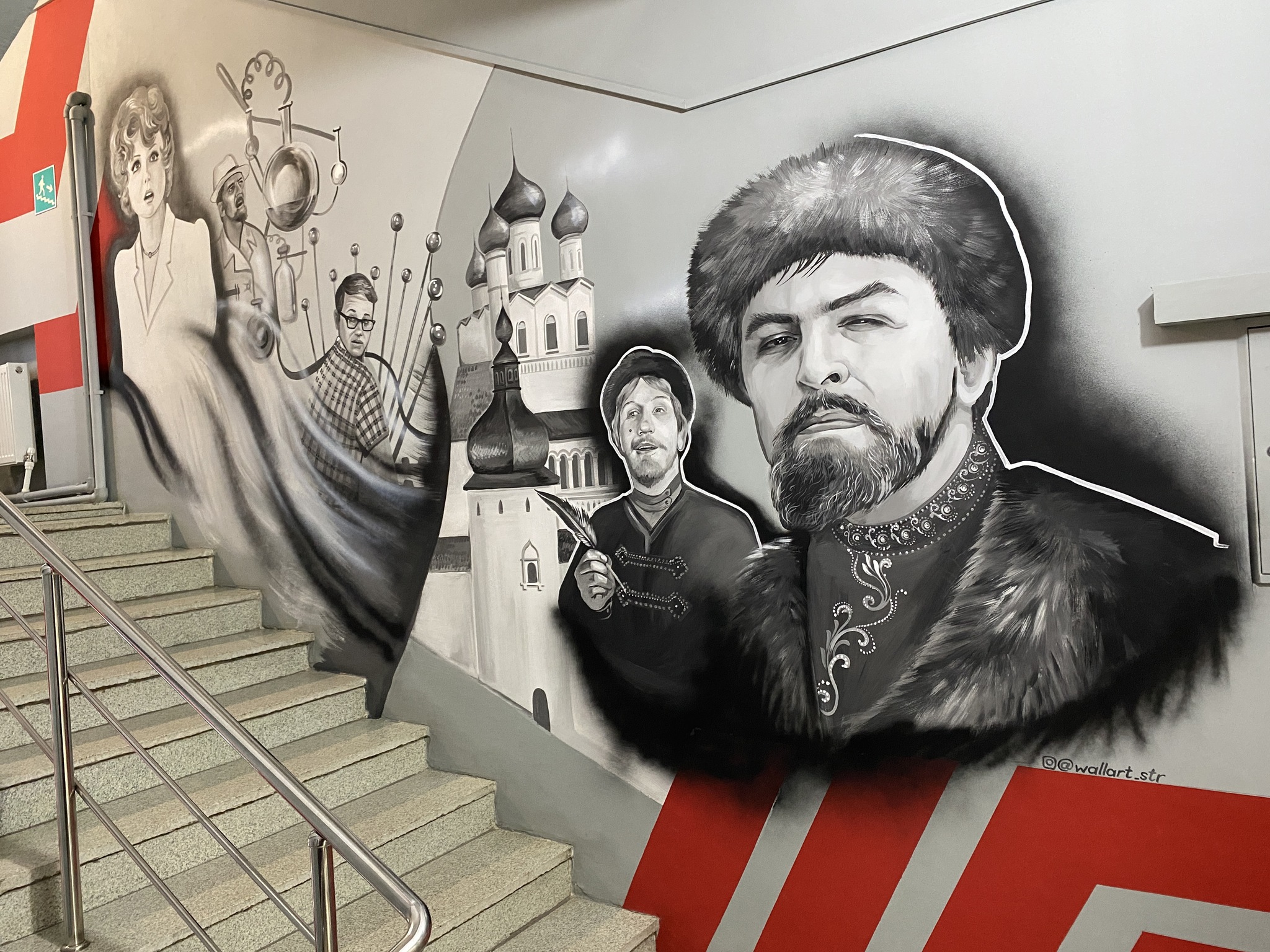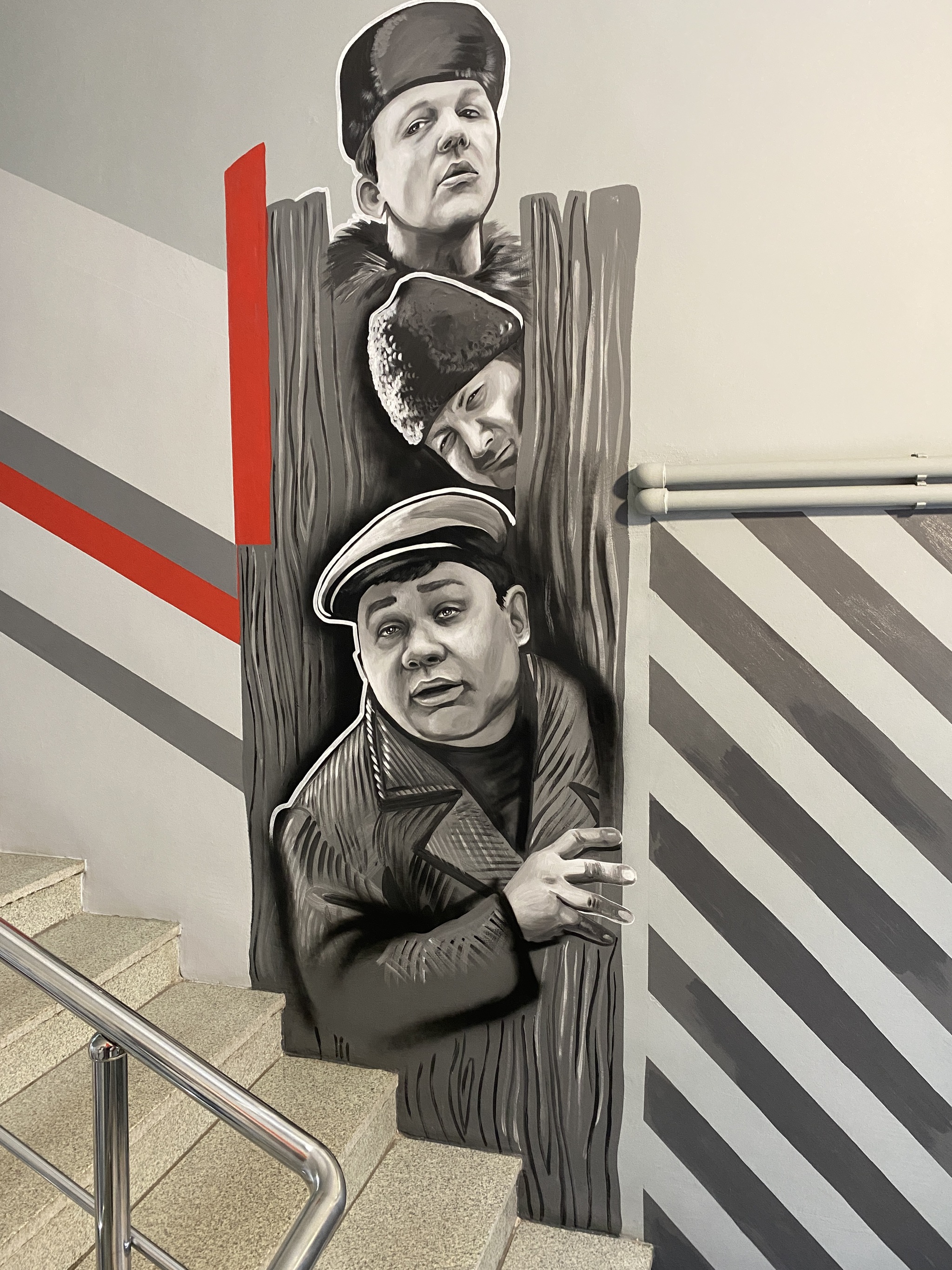 3949 LTimerbulatov Герои советских фильмов 4 месяца назад В городе есть бизнес центр с помещениями и кабинетами под аренду. В одном из лестничных пролетов на стенах нарисованы герои советских фильмов. [моё] Советское кино Советские актеры Длиннопост Мобильная фотография Граффити Бизнес-центр Рисунок на стене Кавказская пленница 267 86 14 8 8 1 1 1 Ещё 3