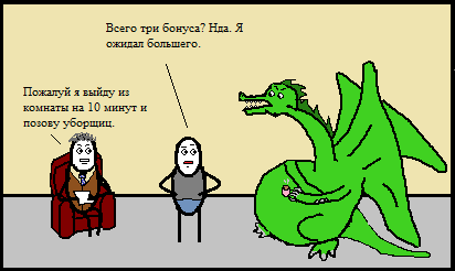 В последнее время куча бонусов стала мейнстримом, так что я думаю теперь постить комиксы с половиной бонуса, или с отрицательным бонусом.