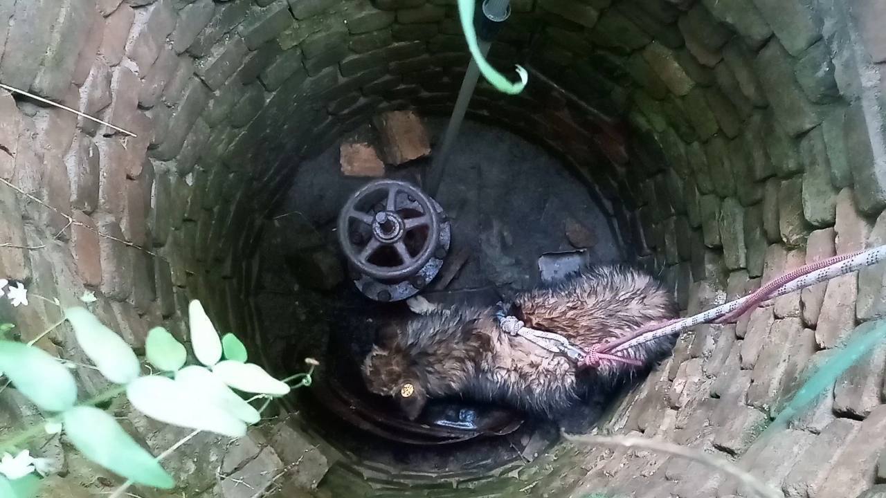 Тем временем зооволонтёры забаррикадировали опасный колодец ветками, чтобы никто больше не угодил в эту ловушку.