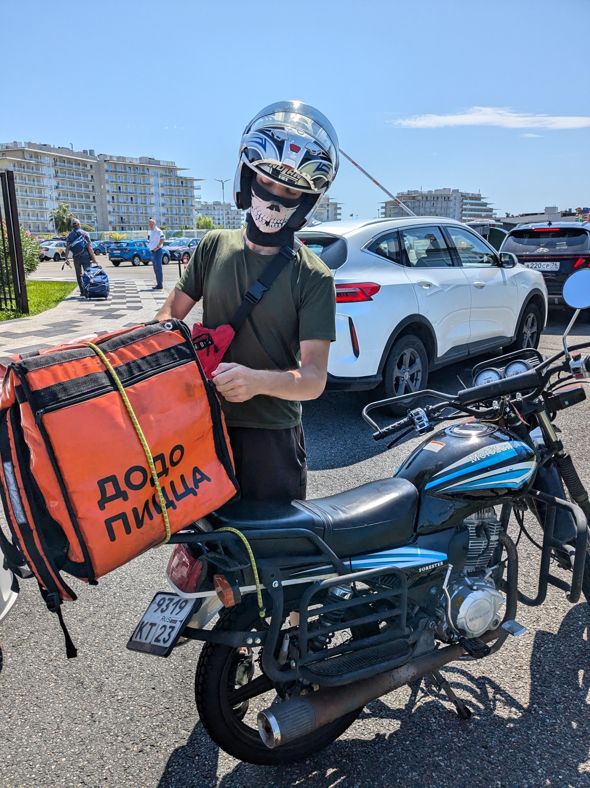 А героем сегодняшнего дня является этот "замечательный" курьер Додо Пиццы, пронесшийся мимо меня по тротуару на мотоцикле.