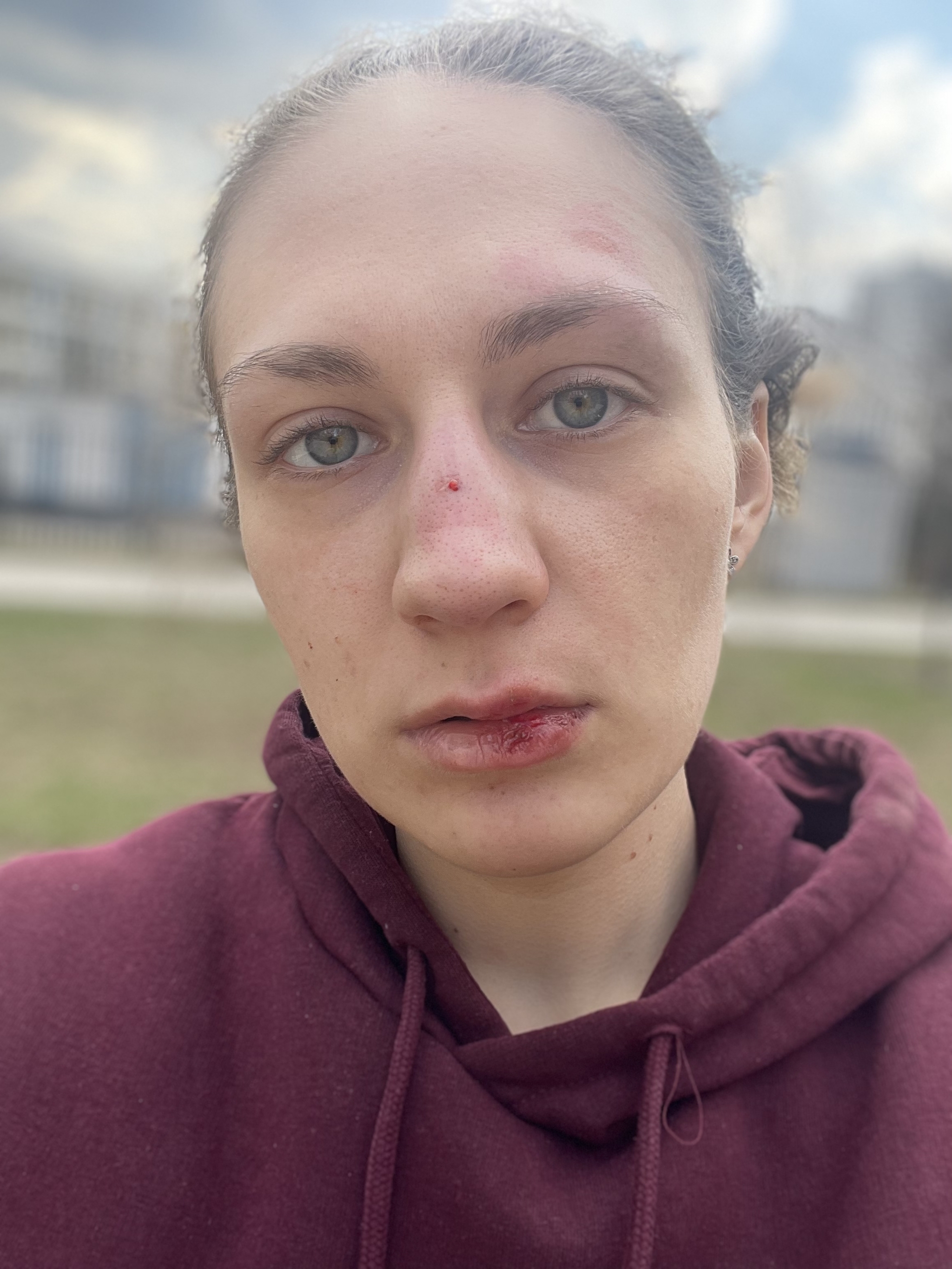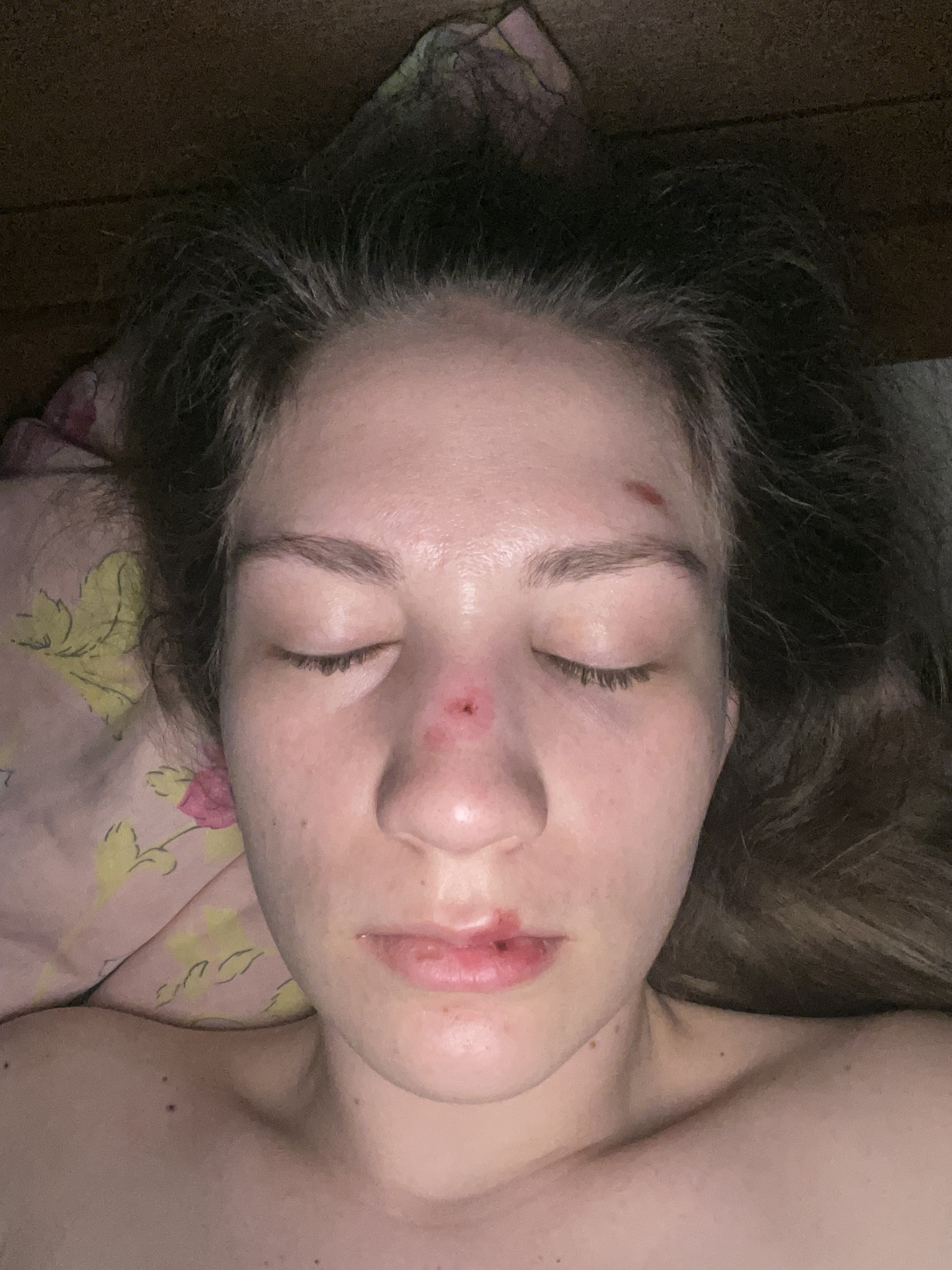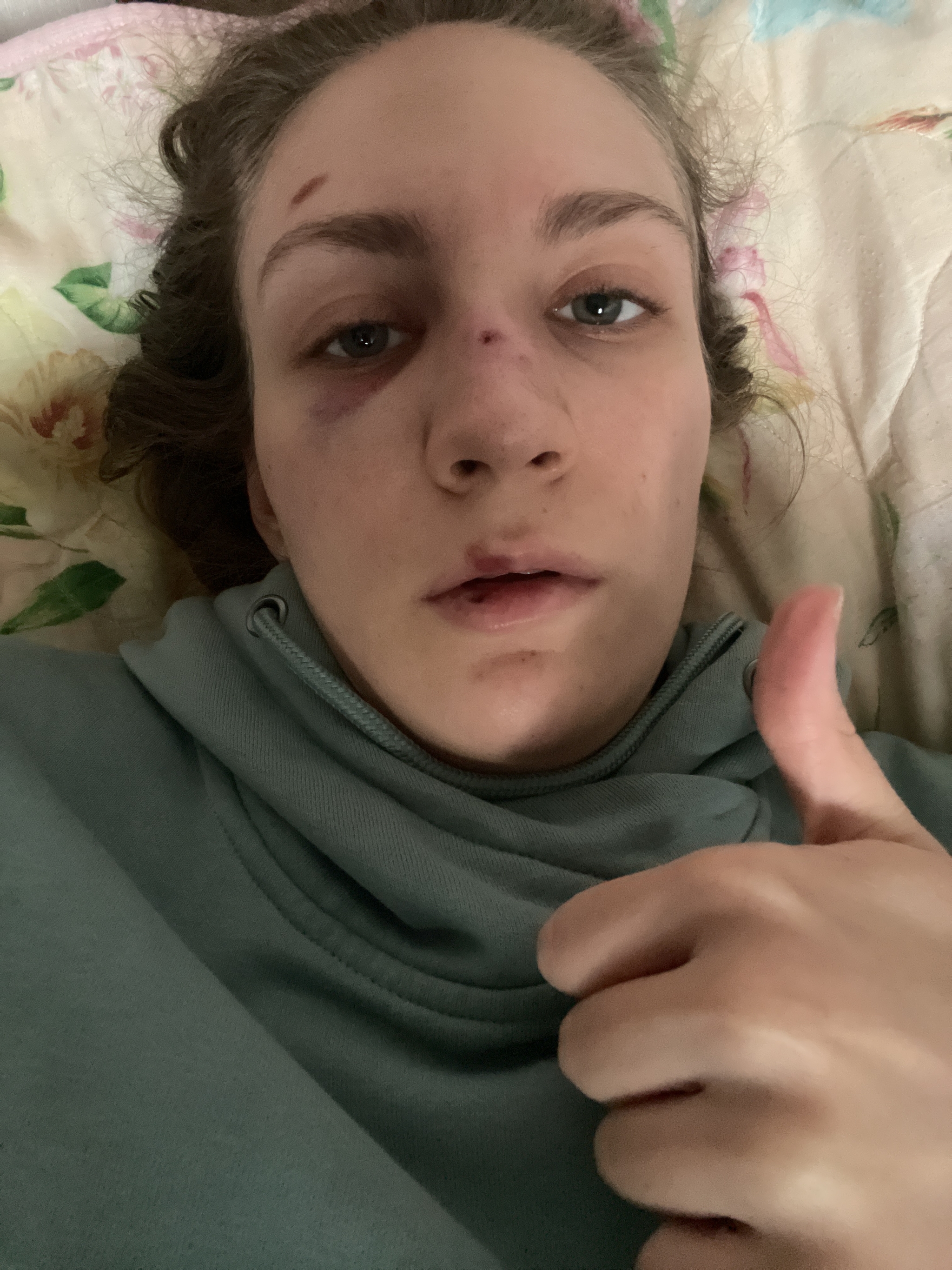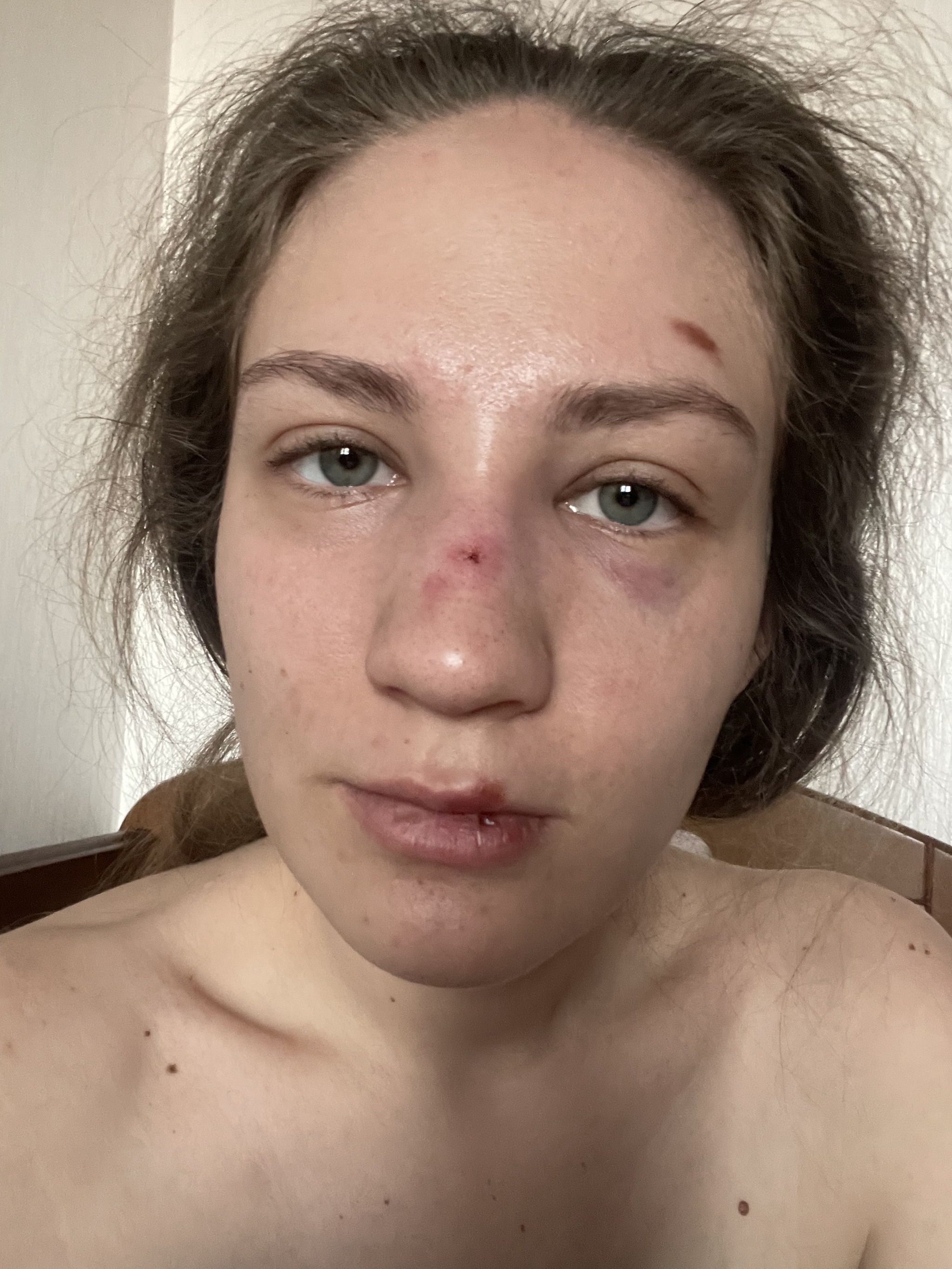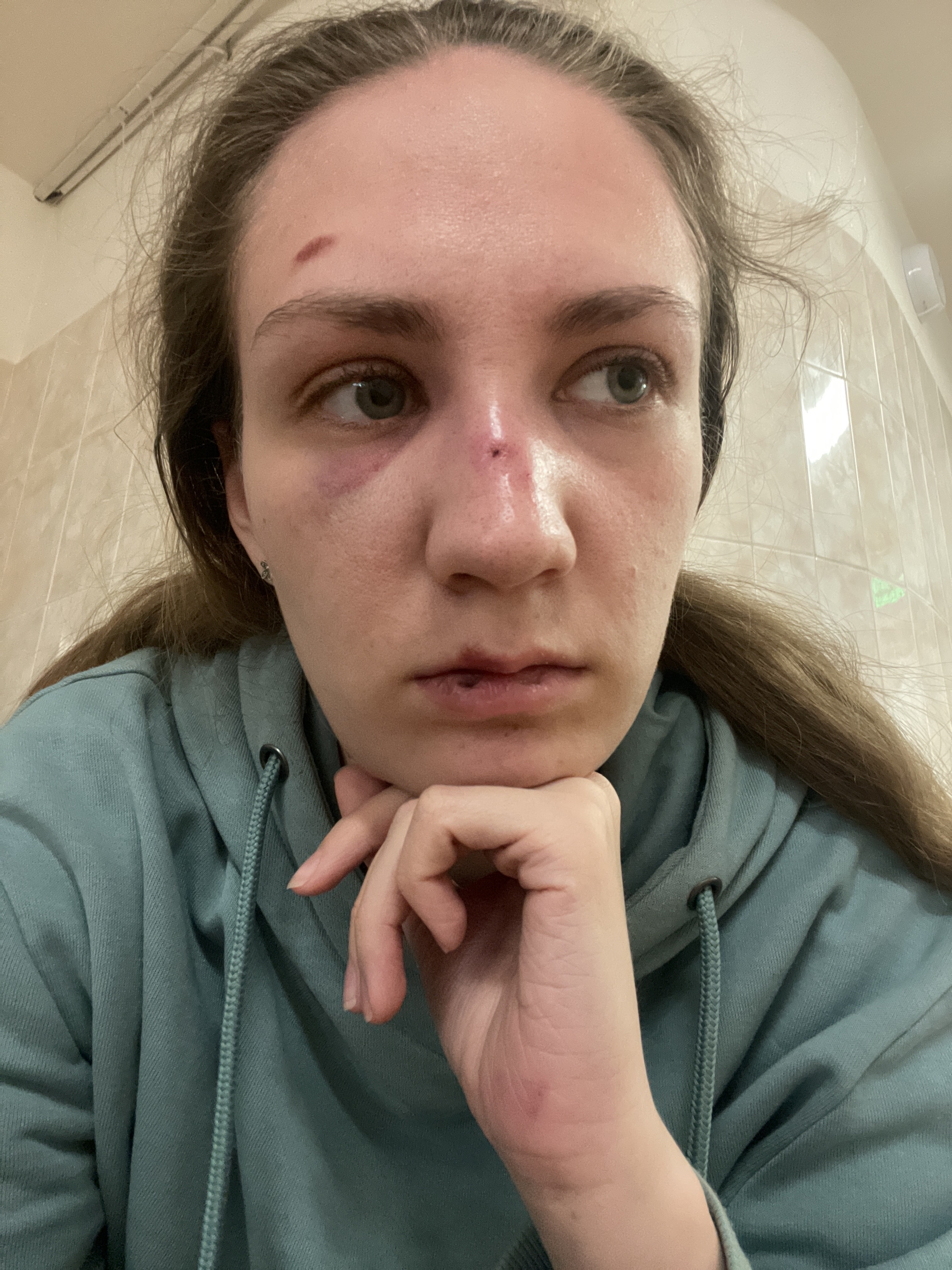 Стыковка, удар где-то в голове, абсолютная тишина и обездвиженность. Звуки начинают возвращаться, слышу двух женщин «надо помочь ей», пытаюсь поднять голову от земли, сразу щупаю нос, вроде не на бок, проверяю зубы, вижу капающую на асфальт кровь. Примерно в этот момент меня сажают, пытаются вытереть лицо, спрашивают, как ощущения, и вызывают скорую (две прекрасные тети оказались медсестрами и очень помогли). Тут, видя бледное лицо спутника, мое второе я, находясь на стрессе, начинает шутить. Единственное, что отчетливо помню, утверждение, что после такого он точно обязан жениться. В целом было не больно, просто сидела в шоке. Скорая не оценила бдительность прохожих и отправила домой с советом попить глицин и заверением, что нос точно не сломан.