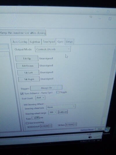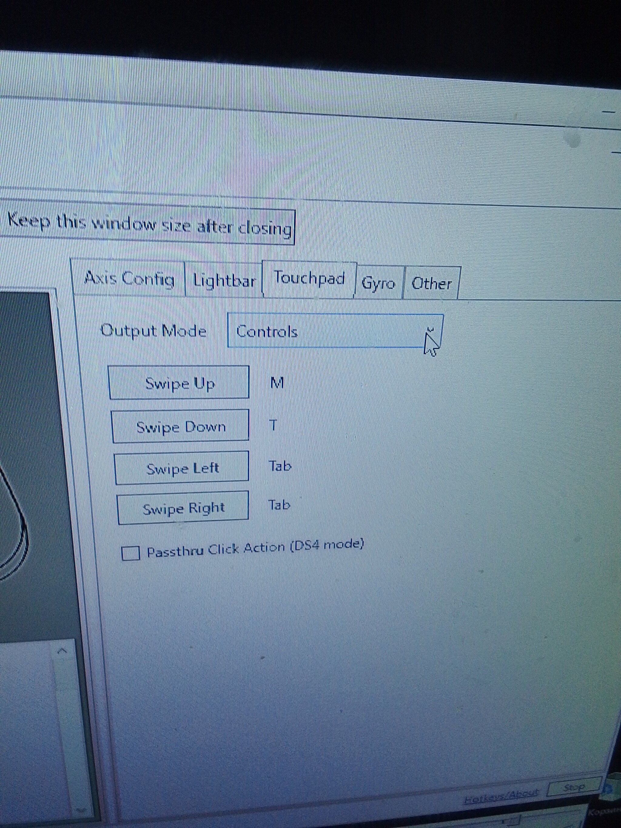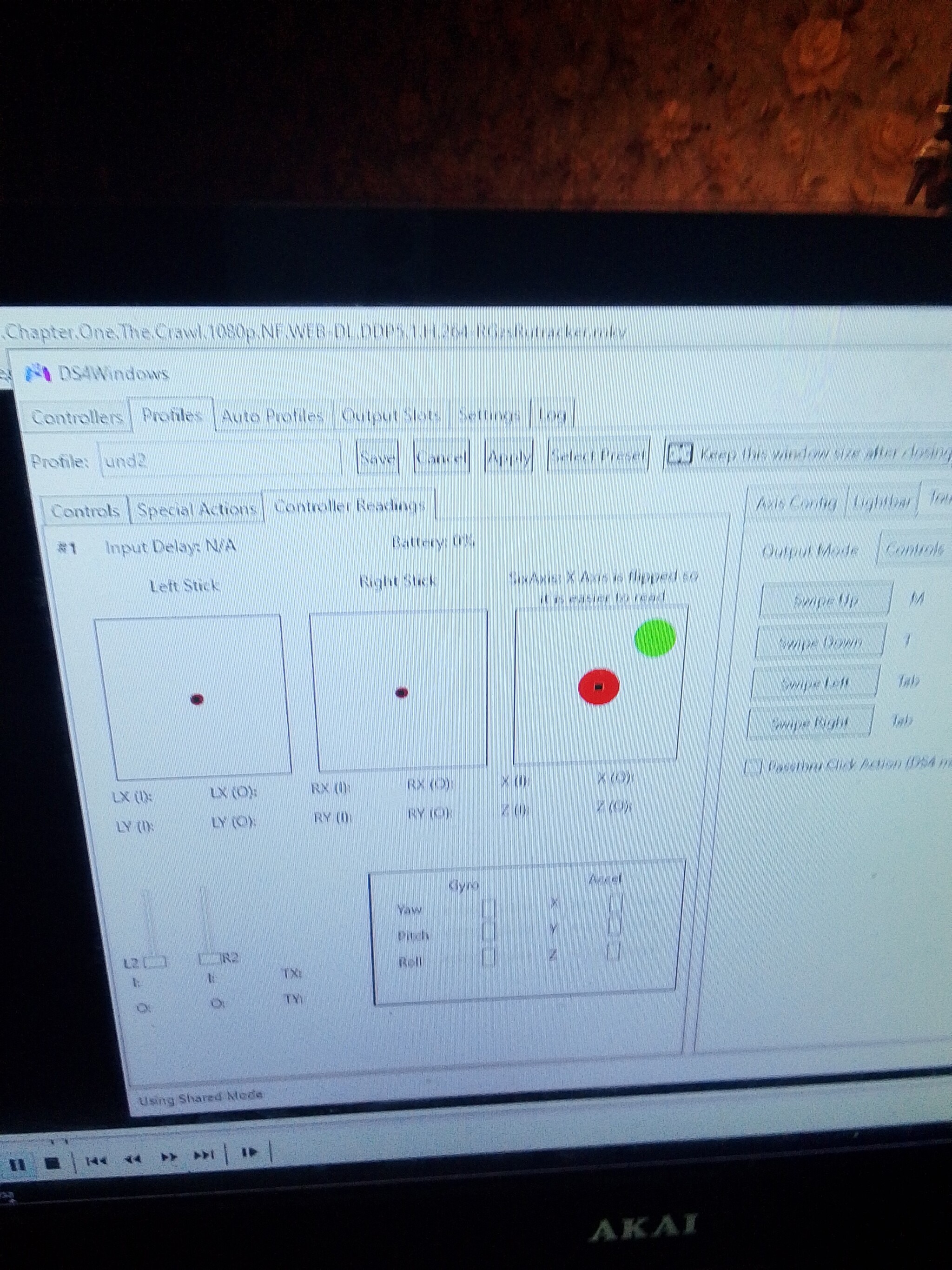 Сенсорную панель тоже можно забиндить, например, в андерграунде у меня с-мах влево и вправо - это сообщение, вверх - карта, вниз - статистика. Там по траектории биндишь так же, хоть на клаву, хоть на мышь. Плюс можно отдельно профили создавать и каждую настраивать хоть под гиро, хоть под тач, клаву-мышь. Красный и зелёный кружок на экране - это гироскоп. Подключи джой и проверь гироскоп - ниче биндить не надо. Если реакция есть - значит работает гиро. Если нет - не работает. Драйвера ставил? Вигем бас драйвер.