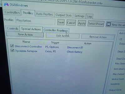 Что значит удалять и подключать? PS + Options отключают джойстик, PS включает. Там в профиле есть спешл экшн. По гироскопу - его надо биндить. Там же в профиле. Тилт ап, тилт даун и тд, просто в проге разбираться надо. Я на чек батери поставил пс+х, можно настроить тайминг считывания - у меня стоит моментальный, функция показывает на лайтбаре цвет от красного до зелёного по уровню заряда - цвет тоже можно выбрать. А гироскоп можно биндить даже так, чтоб курсором пользоваться, чуствительность так же можно настроить. Я пока гироскопом не занимался. Вчера только в проге ковырялся - охерел от возможностей. Забиндил на клаву как удобно и гонял вчера в андерграунд, правый стик на мышь бинданул и еду в игре, а стиком курсор двигаю и угораю, типа за курсором еду))) можно тачпад настроить и тд и тп))) функций огромное количество)))