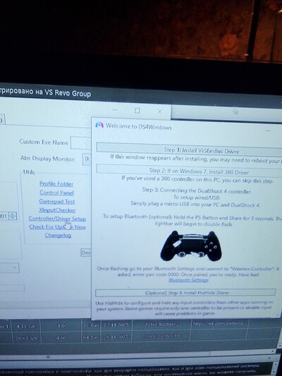 смысл опять устанавливать драйвер?... эта прога может управлять геймпадом только после того как пк его увидит и ты подключишь его... так вот после отключения геймпада и повторного включения его нужно вновь подключать к блюпупу (сделать это можно только удалив его и вновь добавив), он не подключится по нажатию ps пока ты не удалишь его и вновь не добавишь