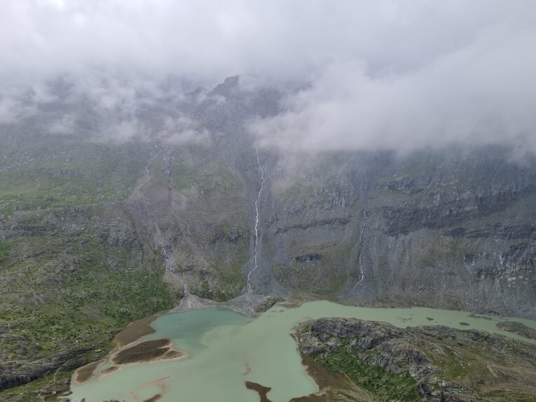 Пока грозой даже и не пахнет, наоборот, частично проясняется, и достаточно тепло. После Кальса нас ожидает нехилый подъем с набором 1300 м, на Глорскую хижину (Glorer Hütte), это вроде как самая высшая точка на профиле гонки. Подъем идет поначалу по идеальной грунтовке с градиентом 9-10%, я очень энергично топаю, иногда даже удается кусочки пробежать (во, зарядился!). Обхожу нескольких человек, в том числе девушек не самого трейлраннерского вида. Почему они передо мной?? А, все понятно после взгляда на их номера - это участницы забега на “короткую” дистанцию в 57 км, они стартовали в Кальсе и теперь бегут (идут) вместе с нами обратно в Капрун. (Тоже респект, конечно, больше 3 тыщ набора!)