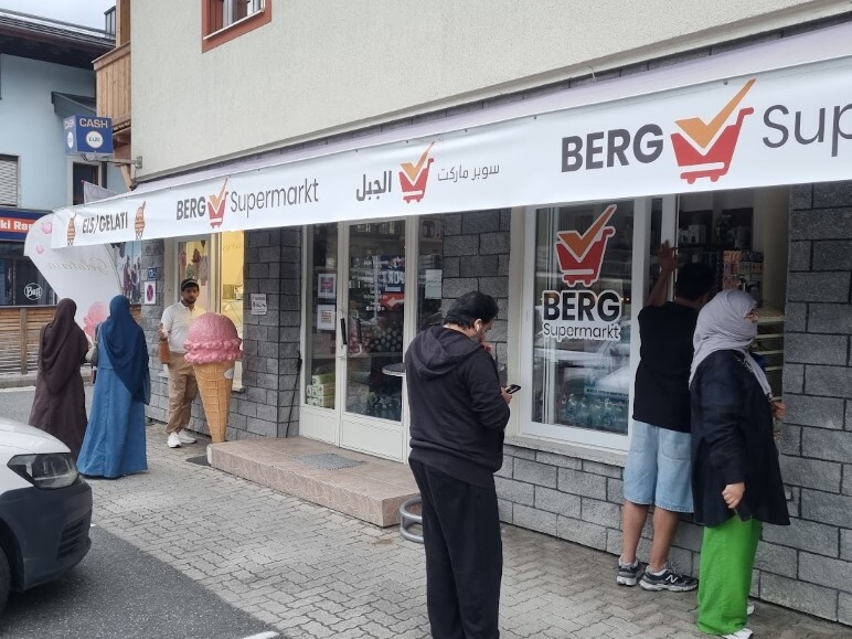 Ладно, приехали на место старта, городок Капрун. Оказалось - он очень популярен среди арабских туристов, неожиданно - вы когда-нибудь встречали на горных тропах традиционную мусульманскую семью?