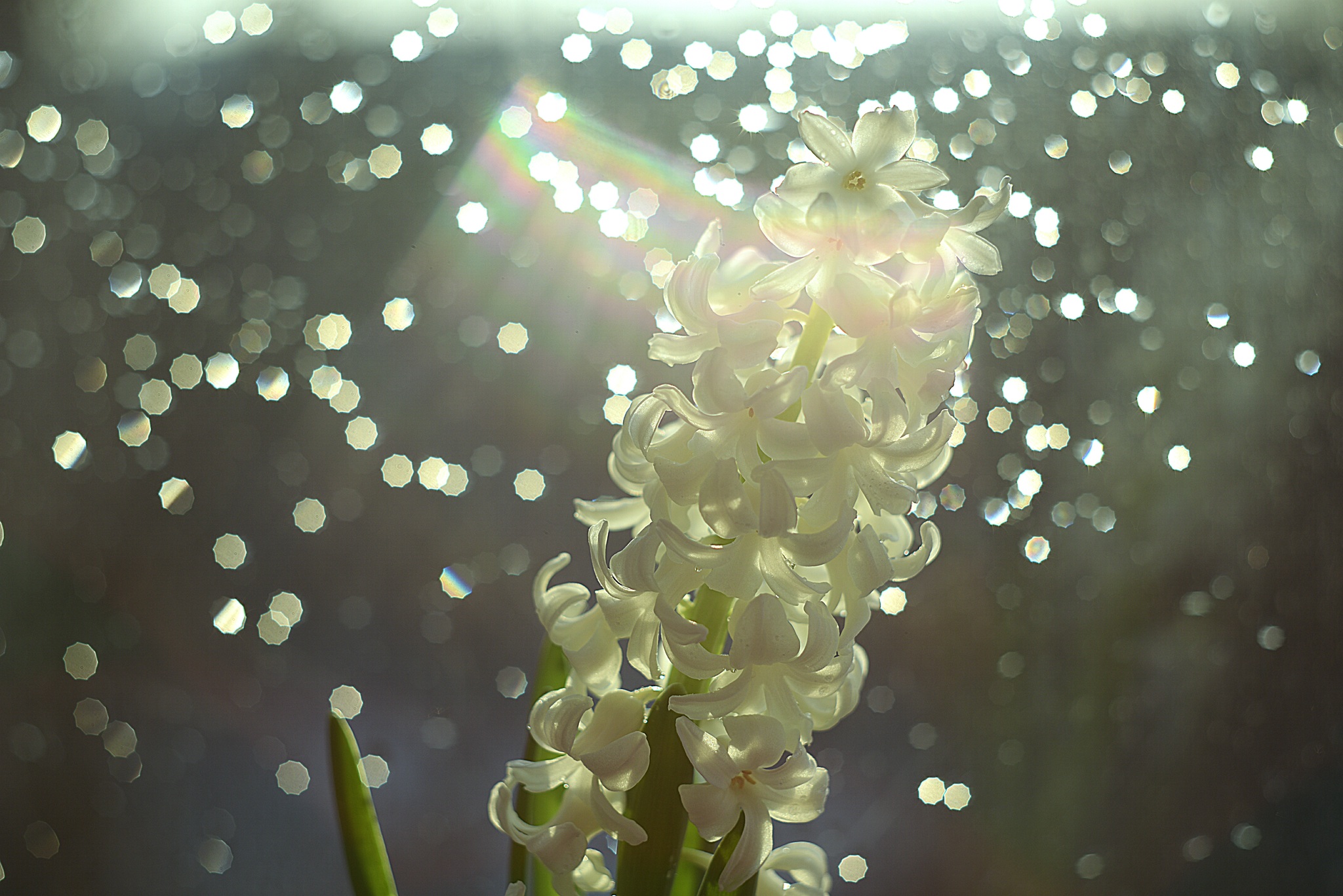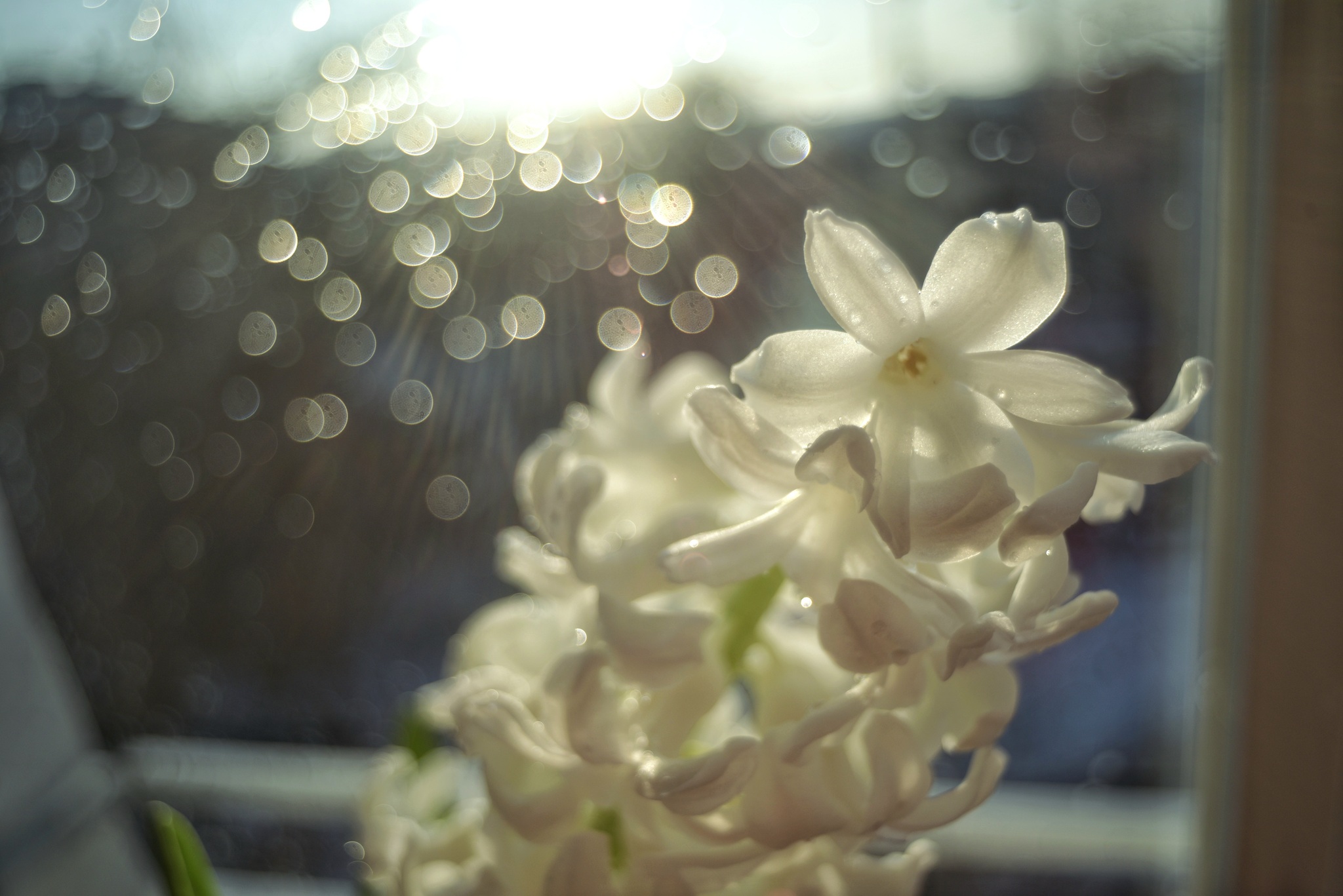 Солнце ушло. Но я подсветила фонариком капли на стекле, ко опые сама же и кропила, муж пришел ужинать и ворчал, что это не профессионально, нужно специальное фотографическое кадило.