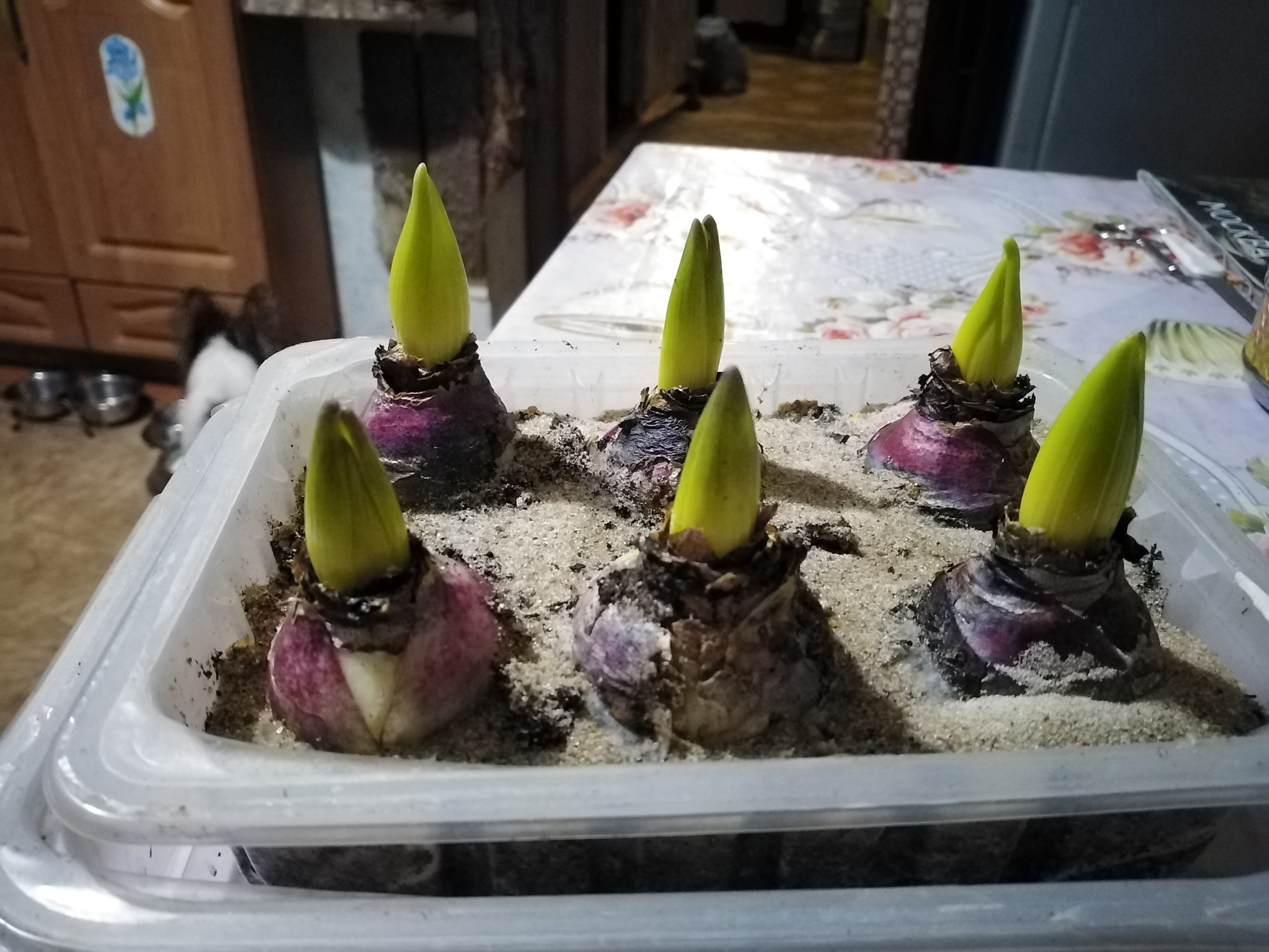 В январе купила 6 штучек цветущих гиацинтов. 3 розовые и 3 голубые были. Дождалась, когда отцвели. Выкопала. 4 месяца лежали, сохли.В августе посадила в пластиковую мисочку и задвинула в холодильник. Они потихоньку растут. Есть смысл ждать цветов? Они голландские.