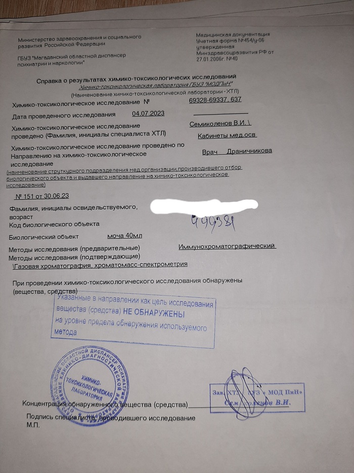 Очень насторожился ,после предложения подписать,вернулся в наркологию,дверь мне фельшер не открыл,позвонил фельдшеру который проводил освидетельствование попросил дать копии и результаты анализов (он должен сделать анализ в течении 2х часов по закону).Фельдшер ничего не дал сказав что все через 4 дня.
