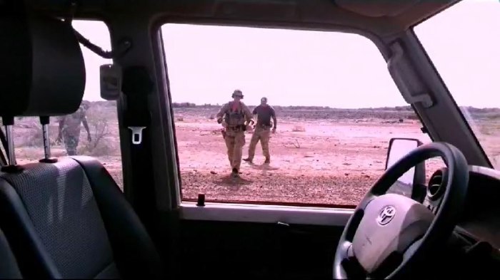 После сообщения о том, что часть отряда попала под обстрел, вторая часть выдвинулась им на помощь. На месте они застали несколько зеленых беретов, которые укрылись за внедорожником и вели ответный огонь по нападавшим.