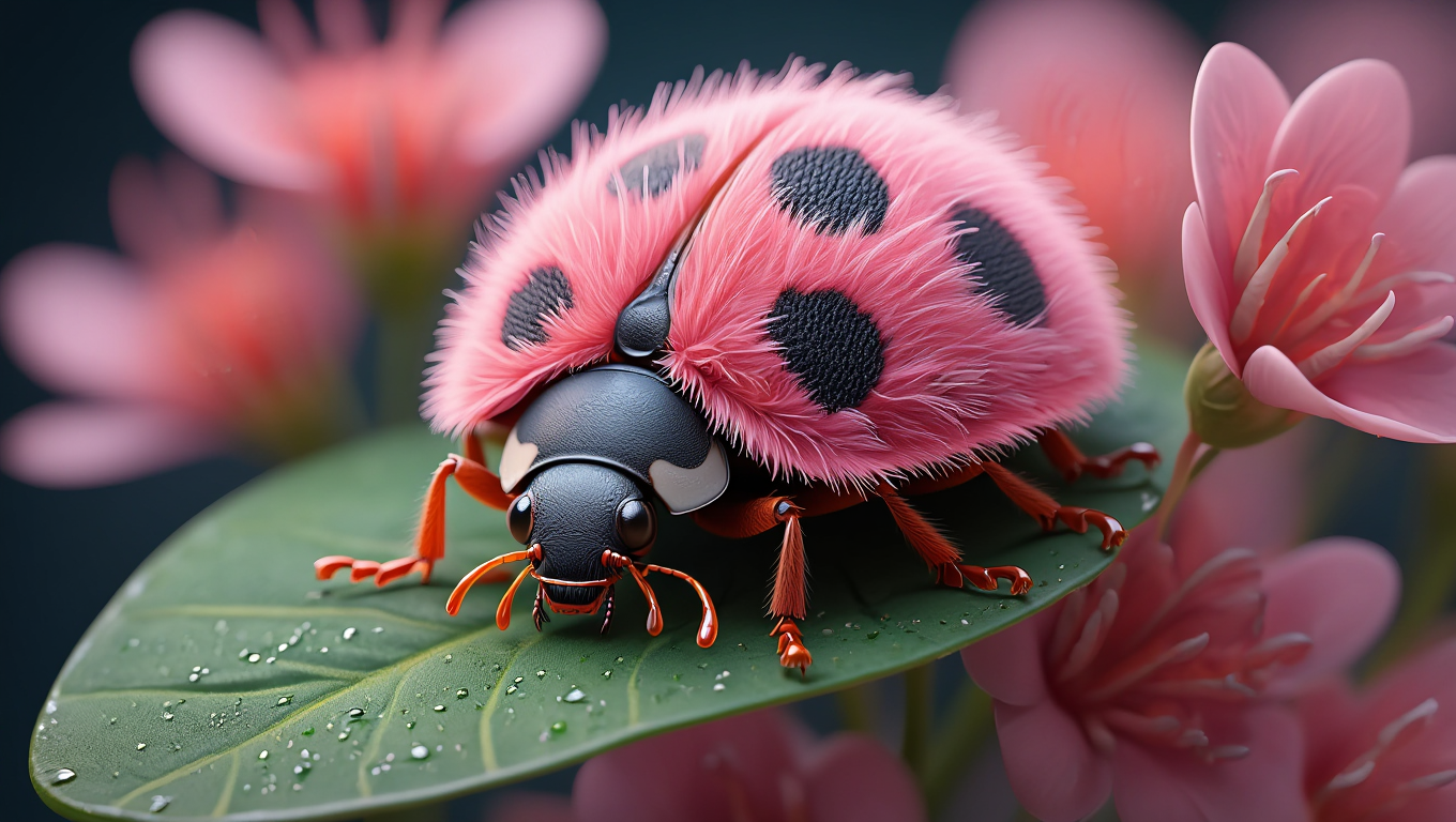 8 EvPix Гибрид божьей коровки 9 месяцев назад Арты нейросетей Нейронные сети Обои на рабочий стол Божья коровка Жуки Пушистые Розовый Цветы Листья Макросъемка 1 Ещё 0