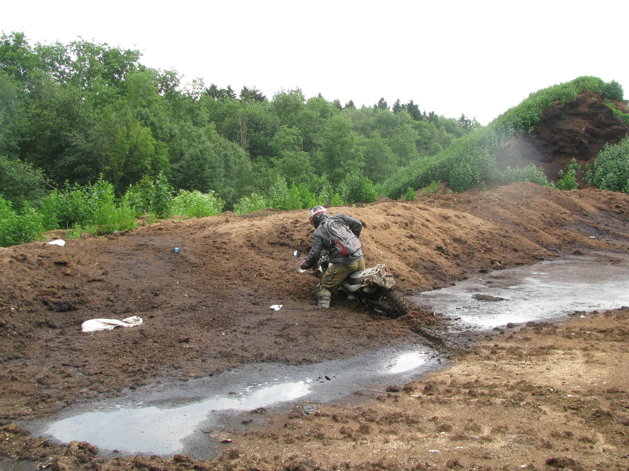 В песок. Ха. Я так в огромную кучу говна с фермы въехал. Было похоже на опилки и не пахло, думал, заеду по опилкам наверх. Оказались не опилки.