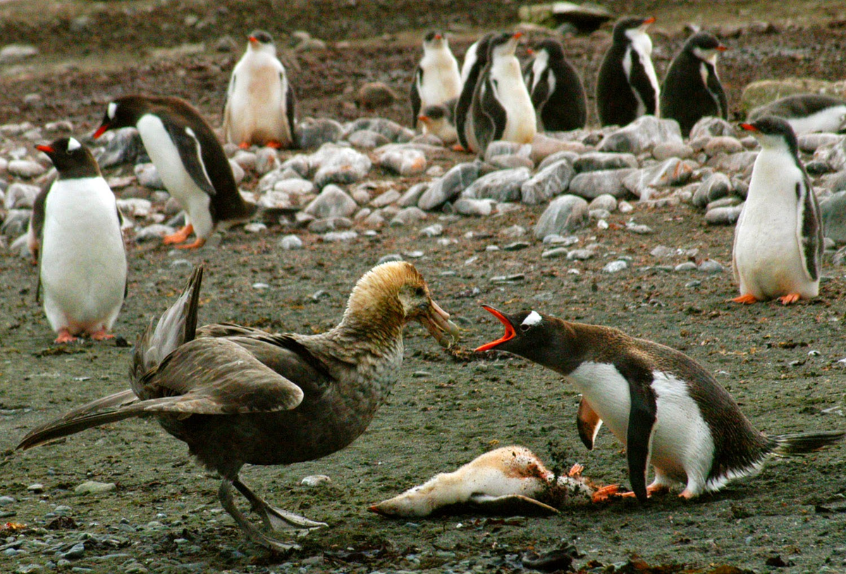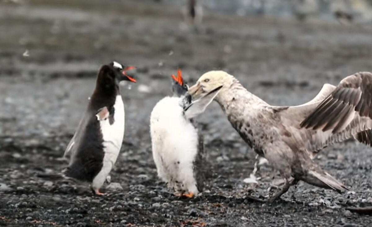 Особенно часто от нападок буревестников страдают пингвины всех видов. Хищники специально ждут, пока родители пингвина потеряют бдительность и можно будет напасть на птенца.