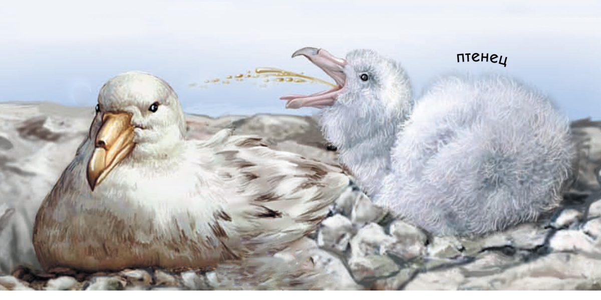 Взрывоопасная смесь из масла и переваривающейся пищи мочит врагов в радиусе метра. Мало того, что коктейль этот ужасно вонючий, так он ещё и липкий. Поэтому тот, кто захочет «убрать» детишек буревестника, рискует остаться на месте преступления навсегда: ведь жидкость напрочь склеивает перья, а прилетевшие мамаша с папашей вряд ли будут рады незваному гостю, покусившемуся на их дитятко.