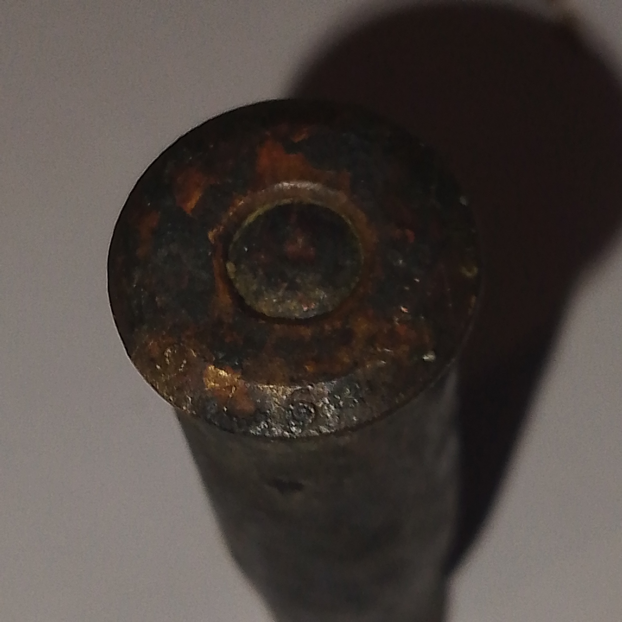 От бесконечного перекладывания бордюров если не польза то вот такая любопытная копанина. Что сразу думает пытливый мозг. Типичный и православный 7,62х53R Сейчас редкость но не прям уж. Кроме того вроде как не битый капсуль и раздутое дульце. Нашел каноническую схему с обмерами ну не получаются цифры. Диаметр моей чуть больше 13 на схемах меньше 13, диаметр по ранту почти 16 по схемам меньше 15 должен быть. Длина тоже не совпадает по схемам это 53 с половиной у меня гораздо меньше - 47,5 Казалось бы почистить донце и посмотри клейма. А вот хрен мало там что видно.