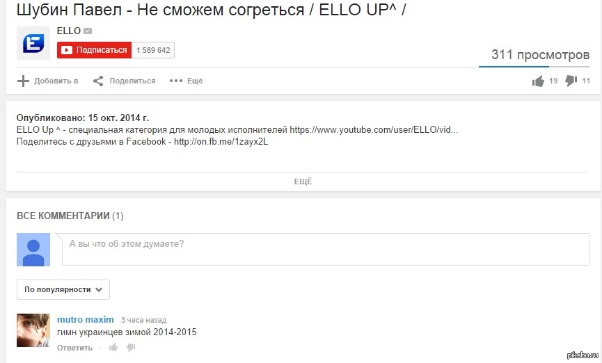dinosaur2296 11 лет назад гимн Украины смотрел клип знакомого,коммент доставил [моё] YouTube Комментарии