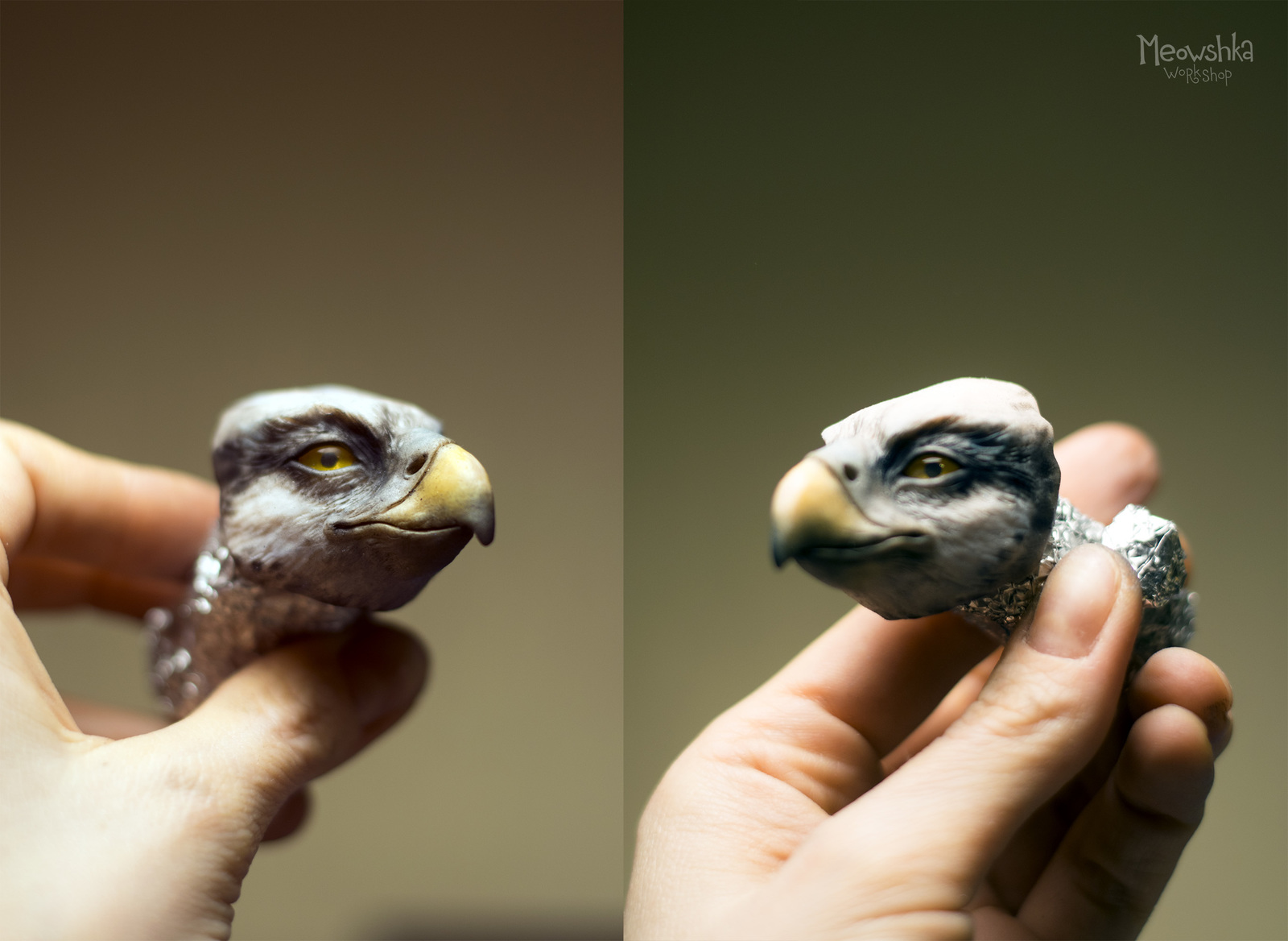 В работе использованы: полимерная глина, стекло, искусственный мех, искуственный волос, натуральные перья.