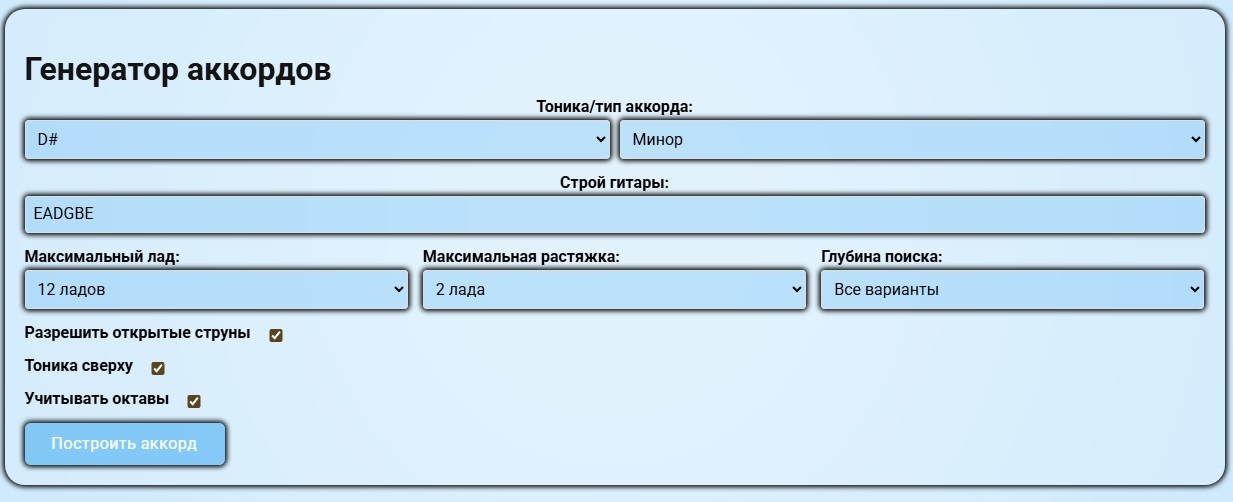 Здесь вы можете настроить генератор аккордов так, чтобы получить больше комбинаций одного и того же аккорда и даже его обращенные формы.