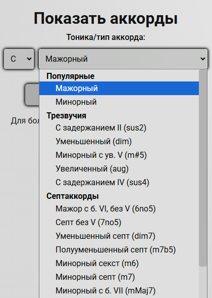 Добавили возможность прямо на главной отобразить любой аккорд мажорной и минорной формы.